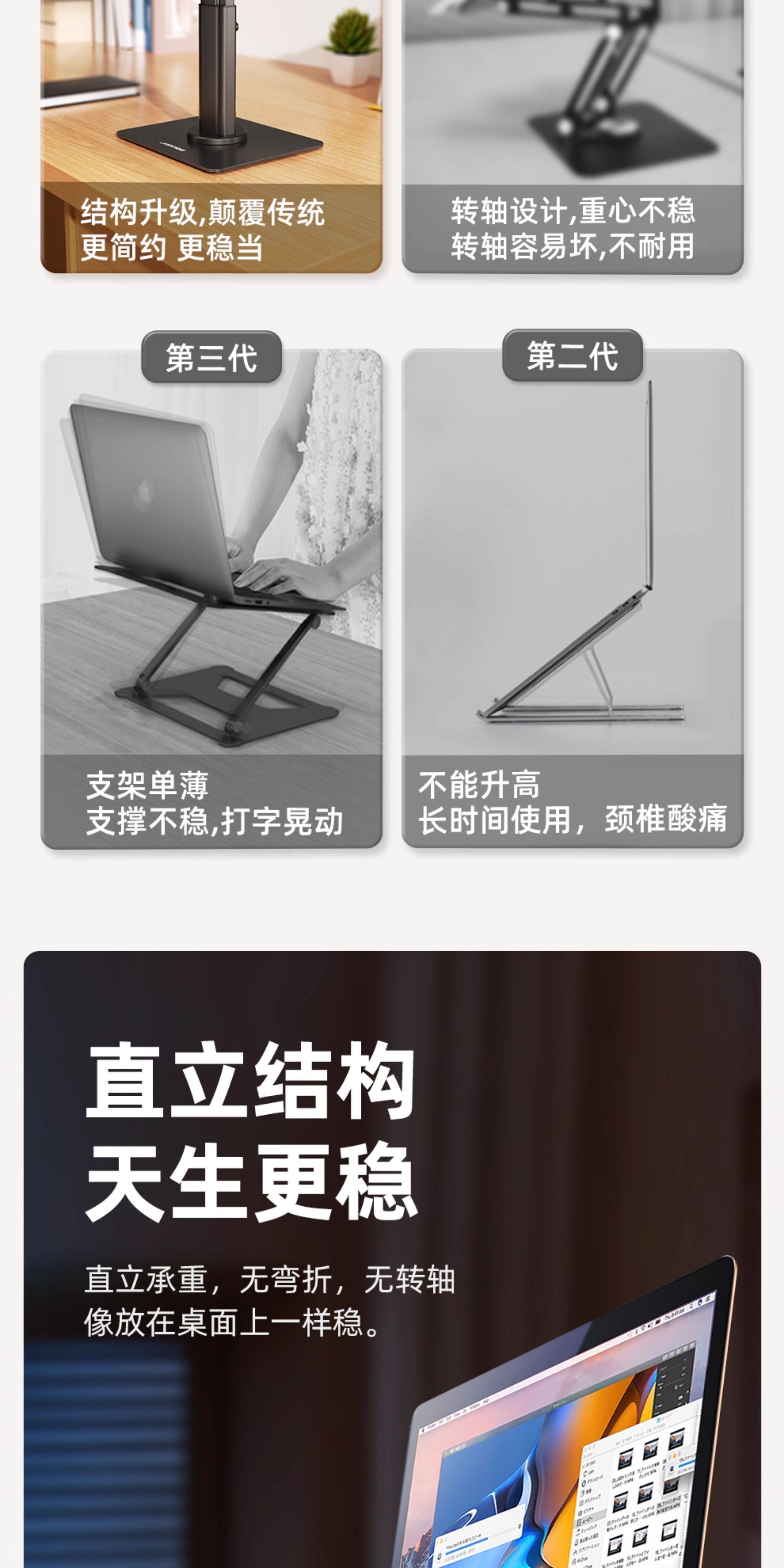 Xiaotian Laptop Stand 360-Degree Rotatable Vertical Bracket, Suspended Cooling, Adjustable Height, Desktop Heightening Type, Tablet 2-in-1 Aluminum Alloy Standing Desk, Metal