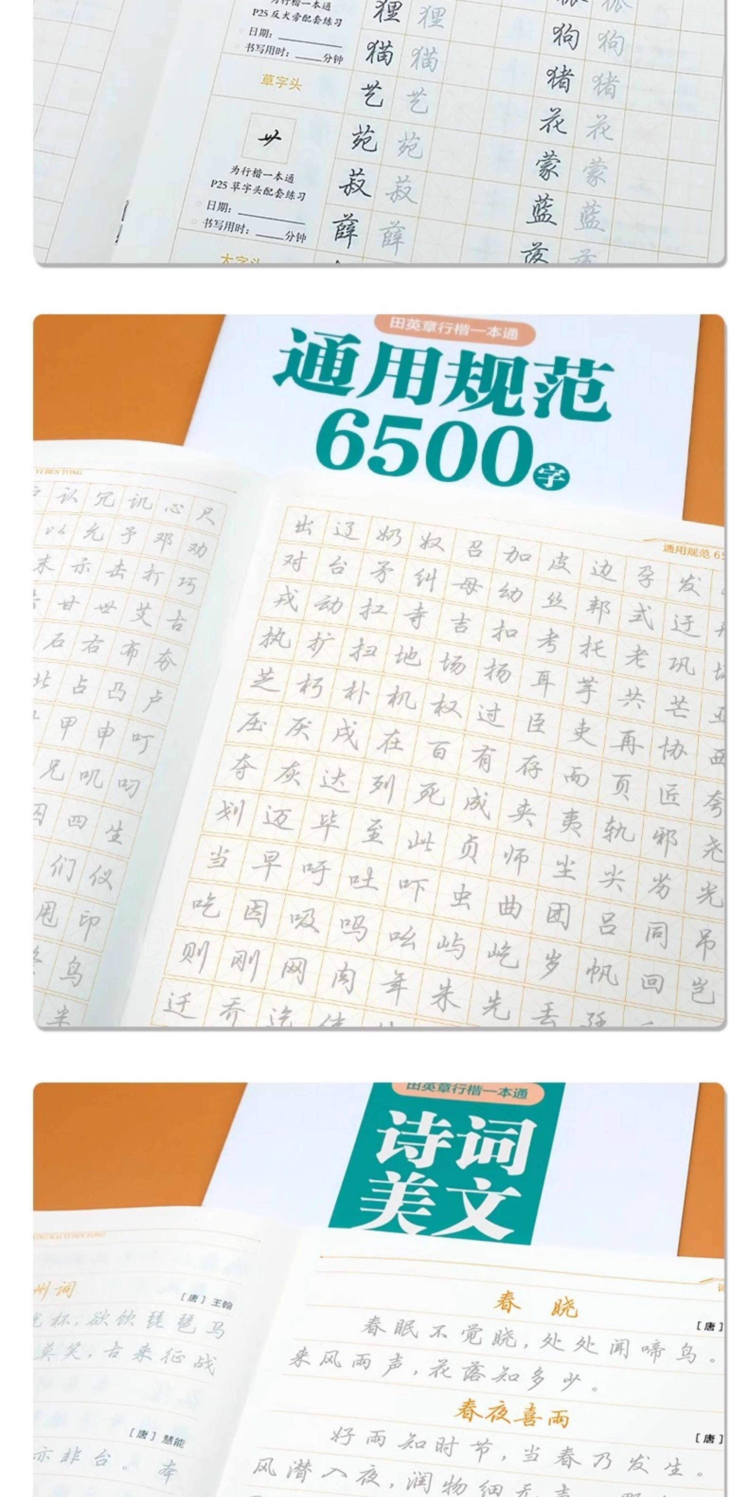 | Color Classification | [Regular Script] New Version Upgrades 7,000 Commonly Used Characters,ãStandard Script All-In-OneãStandard Tutorial,ãXingkai YitongãStandard Tutorial,ãStandard TutorialãA Comprehensive Guide to Running Script Calligraphy,(Recommended by the Store Manager) [One Book in Regular Script + 7,000 Commonly Used Characters in Regular Script],6 Volumes [One Volume in Block Letters + New Version of Regular Script with 7,000 Commonly Used Characters],[Regular Script] 30 Minutes a Day.,ãRegular ScriptãTian Yingzhang's Modern Chinese 3500 Characters.,[Regular Script] [Beautiful Poetry].,[Regular Script] [Mottoes and Aphorisms].,Tian Yingzhang [Classic of Poetry in Regular Script].,Tian Yingzhang's Running Script [5500 Chinese Characters for Civil Servants].,Tian Yingzhang's Regular Script [5500 Chinese Characters for Civil Servants].,Learn Running Script from Teng Yingzhang.,Tian Yingzhang [Quick Guide to Running Script].,Tian Yingzhang's Regular Script and Double Body [Selected Analects of Confucius].,Tian Yingzhang's Regular Script and Double Body [Mencius Selection].,Tian Yingzhang's Inspirational Quotes in Regular Script [Copy].,Tian Yingzhang's Regular Script and Double Body [University·Zhongyong].,Tian Yingzhang's Running Script Is Quick [Interframe Structure].,Copying in Regular Script [Chinese Classical Poetry].,Tian Yingzhang's Regular Script [Disciple Rules]. |