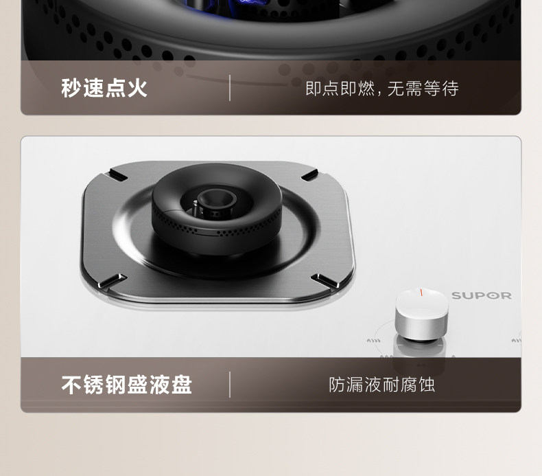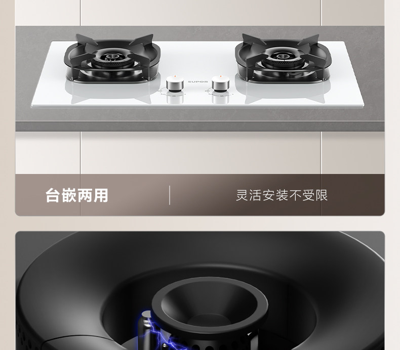 Supor Mb35S Gas Stove White Gas Stove Double Burner Household Built-In Natural Gas Liquefied Gas High-Power Stove