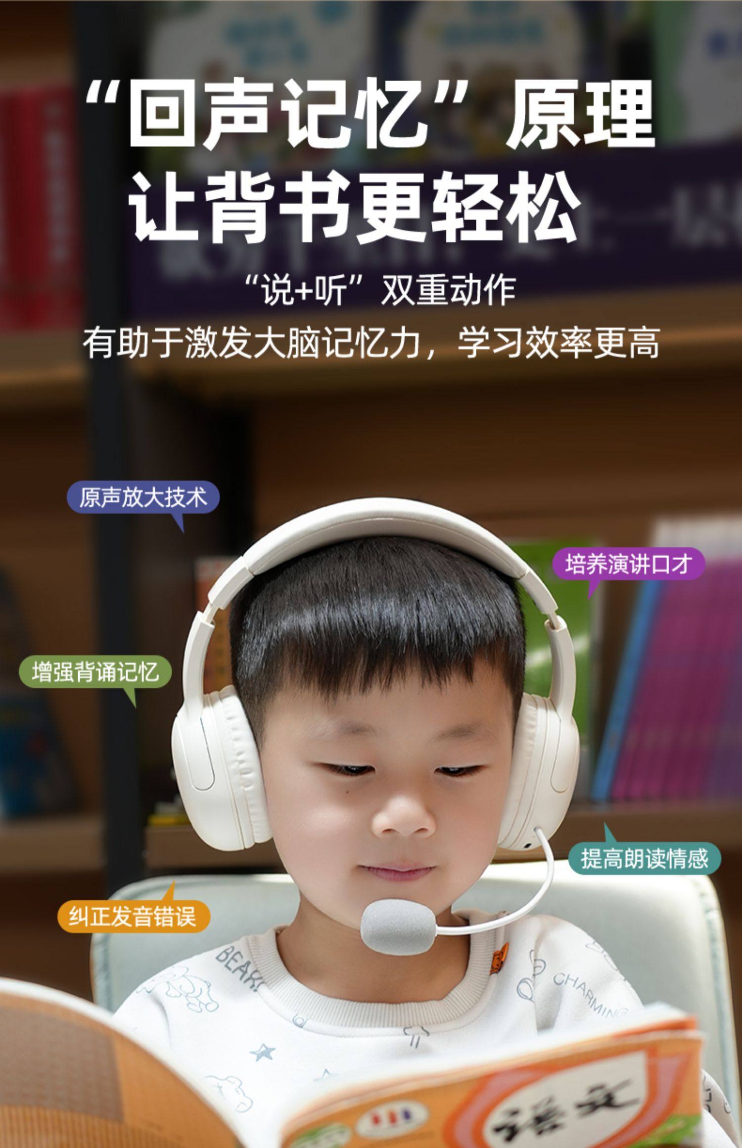 Headphones for Immersive Learning, Student and Children's Head-Mounted Bluetooth Reading and Memory Headphones