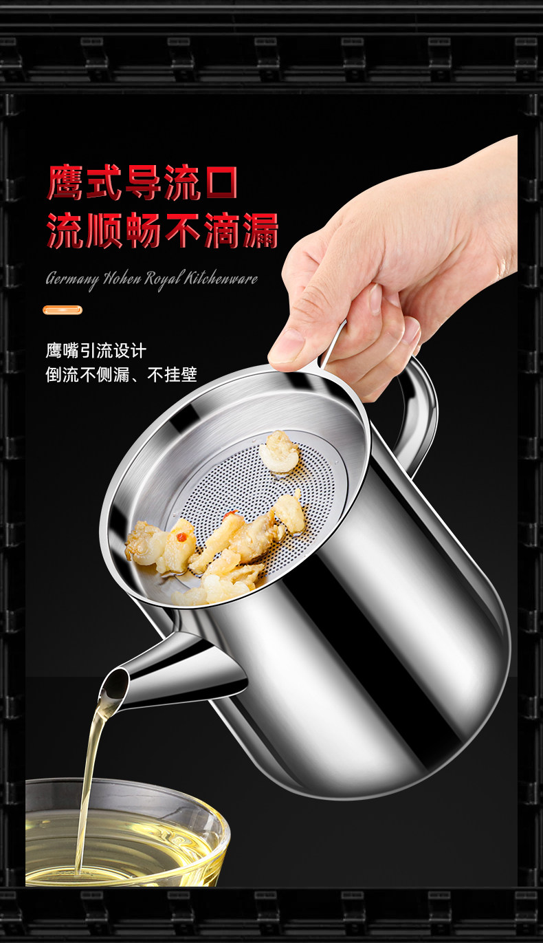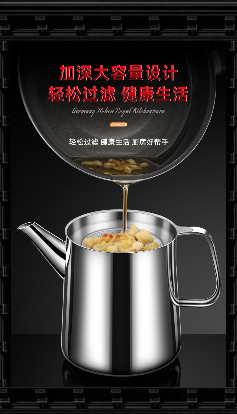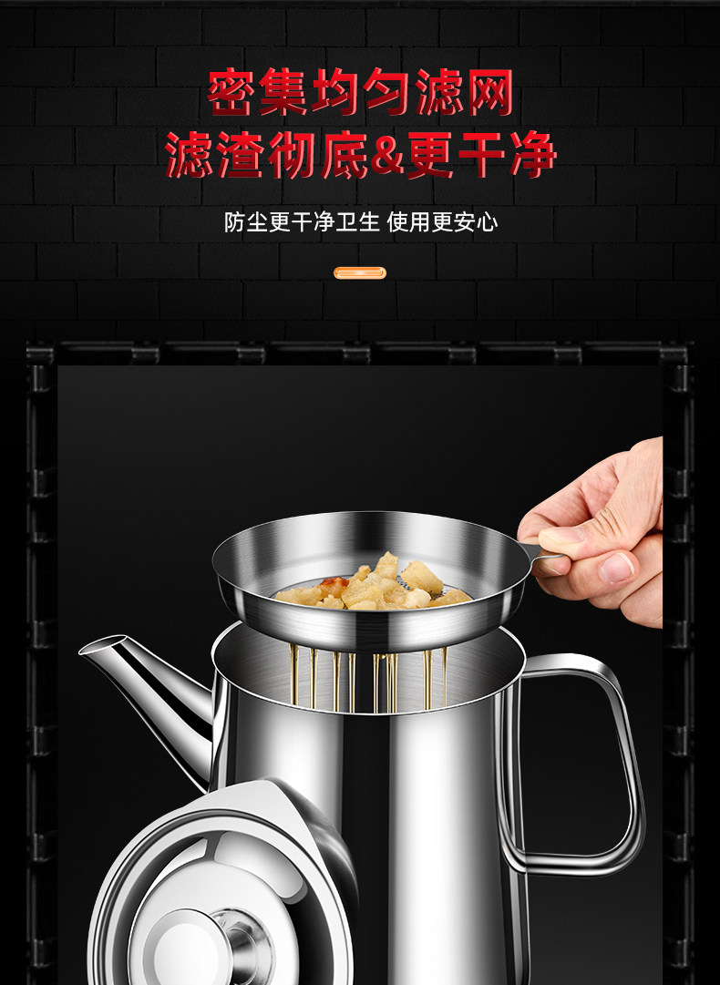 Stainless Steel Oil Filter Pot 304 Food Grade Thickened Oil Pot Kitchen Household Flagship Store with Filter Mesh Oil Storage Tank