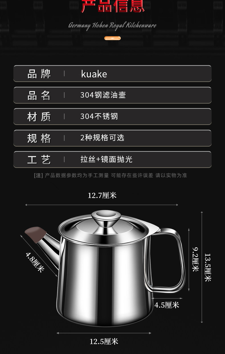 | Color Classification | The Following Is the Sanded Version,304 Sanded Model[1L]Approximately 2.1.0kg Oil,304 Sanded Model[1.5L]Approximately 1.5kg Oil,304 Sanded Model[1L]Two Pack,304 Sanded Model[1.5L]Two Pack,304 Sanded Model[1+1.5L]Combination Package,Here Are High-Quality, Thickened, Finely Polished, and Bright-Finished Options,304 Bright Style[1L]Approximately 2.1.0kg Oil,304 Bright Style[1.5L]Approximately 1.5kg Oil,304 Bright Style[1L]Two Pack,304 Bright Style[1.5L]Two Pack,304 Bright Style[1+1.5L]Combination Package |