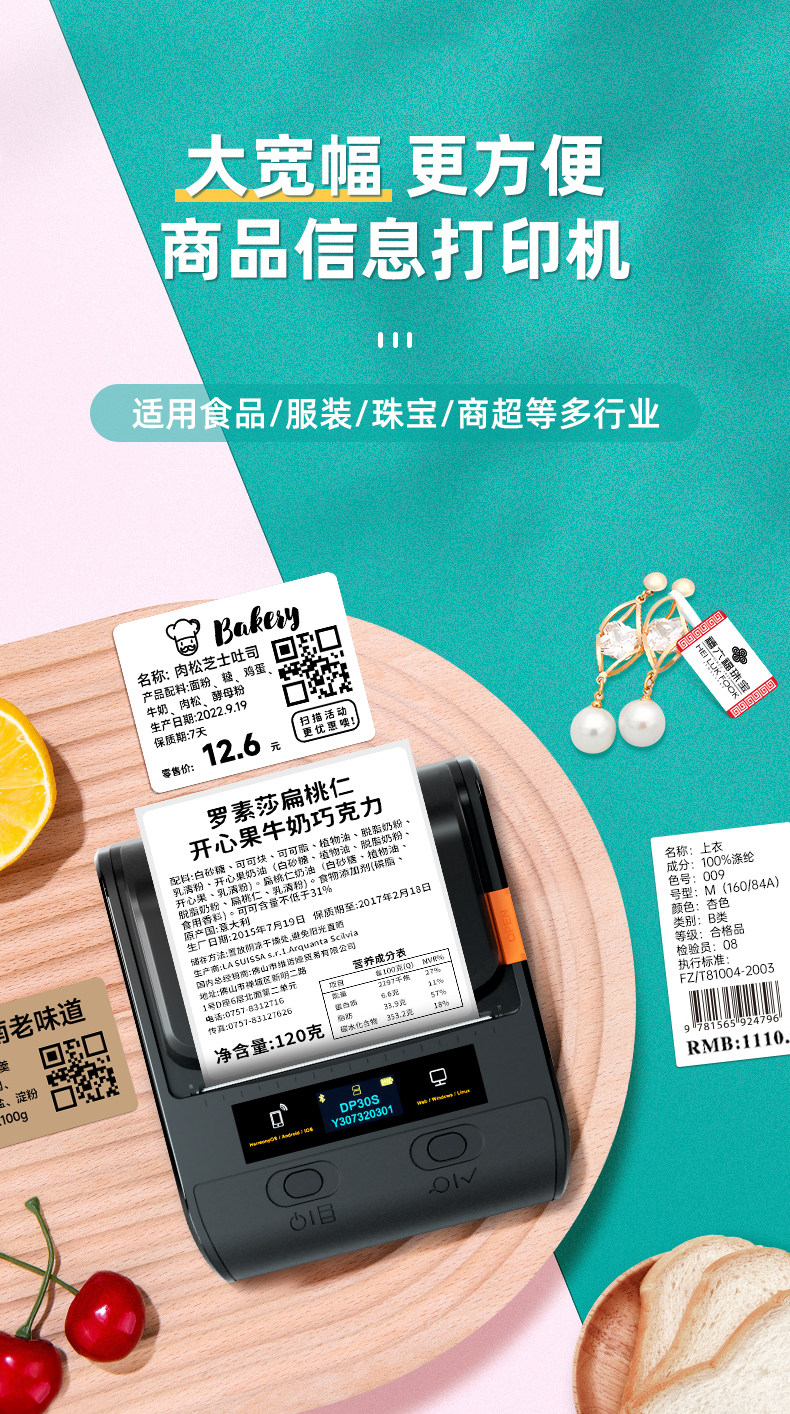 Detong Dp30S Food Label Printer, Self-Adhesive Sticker Pricing Machine, Large-Size Tea and Mooncake Production Date Clothing Qr Code Barcode Small Thermal Supermarket Price Tag Coding Machine