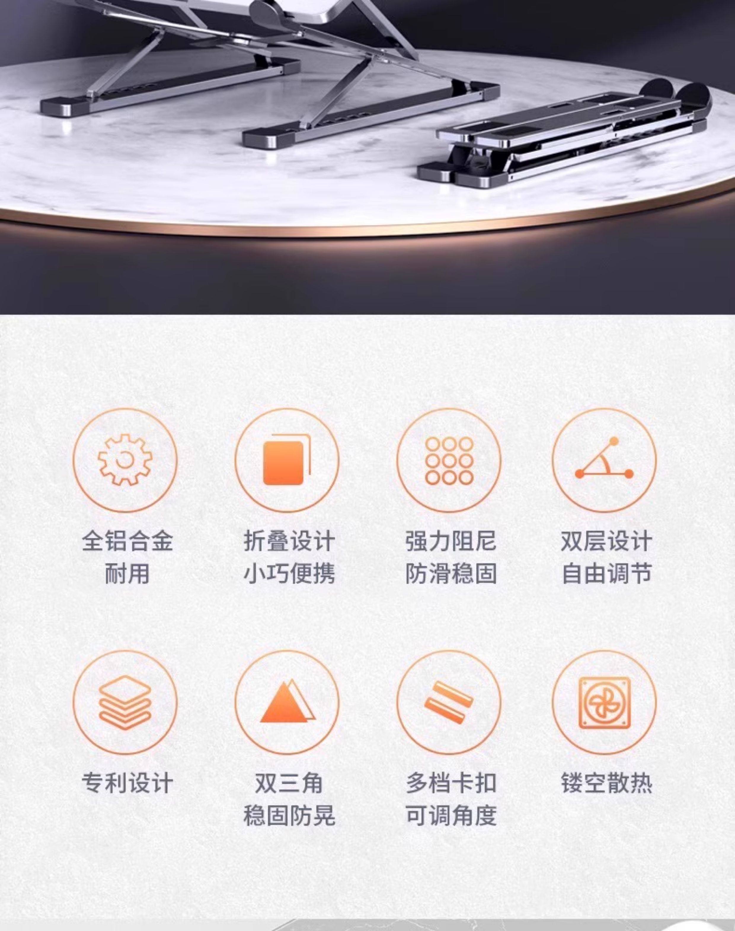 2024 New Laptop Stand Aluminum Alloy Bracket Heightening Suspended Design Suitable for Gaming Laptops R9000P Savior Y7000P Radiator Base 16/17 Inch 3/4 Portable Support Stand
