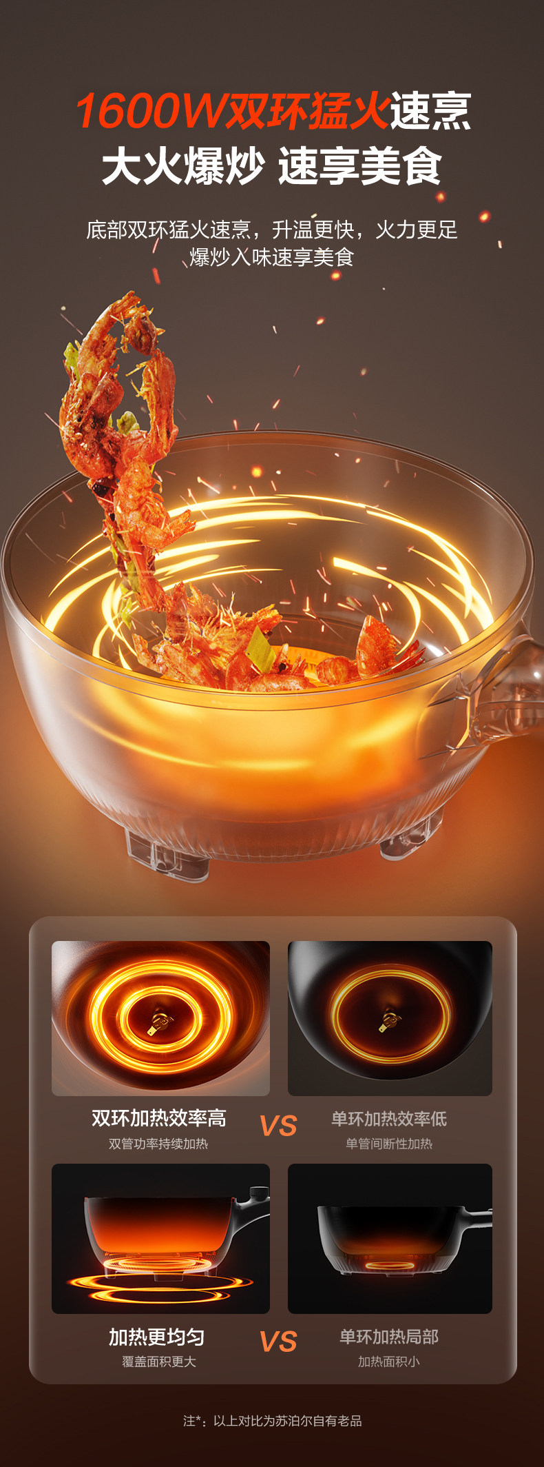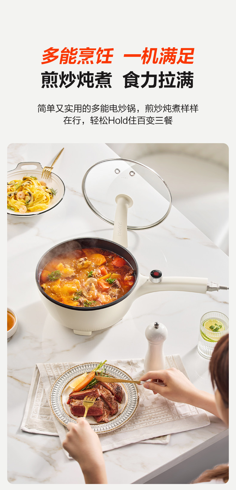 Supor Electric Wok for Home Use, All-In-One Non-Stick Pan, Multifunctional Electric Cooker for Dormitory, Steaming, Boiling, Frying Electric Pot