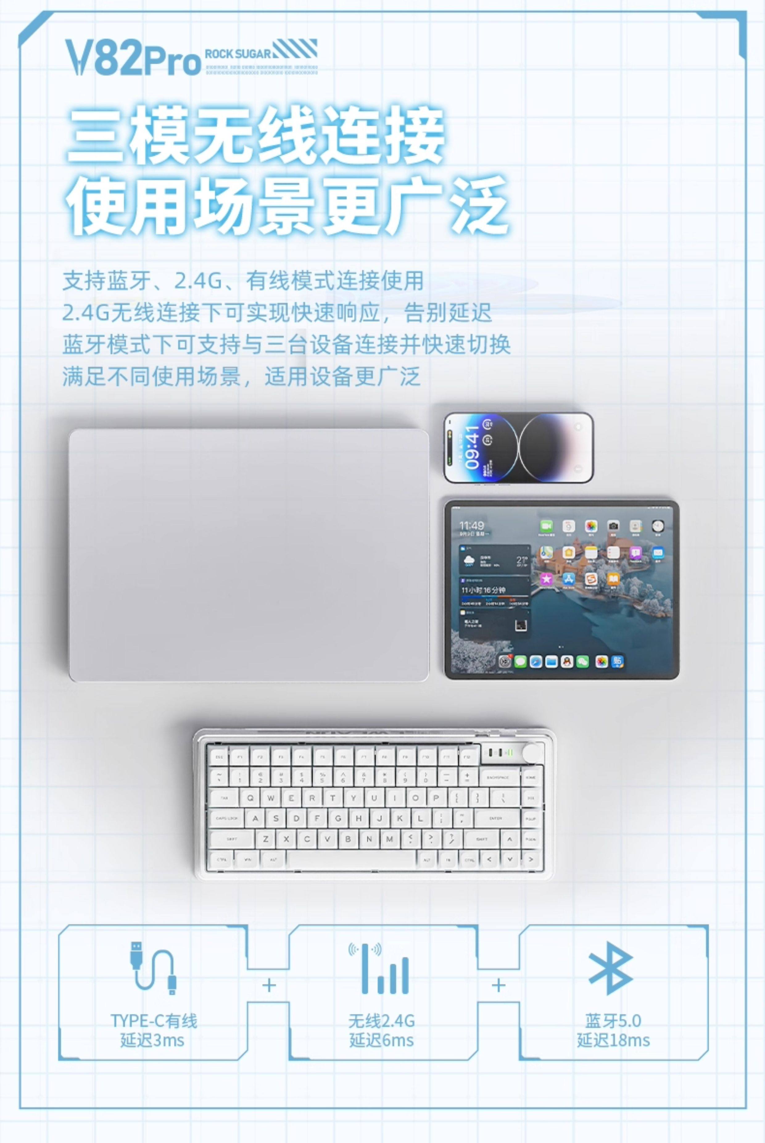 | Color Classification | Order Today[Contact Customer Service to Send✅Keyboard Brush],V82Pro-Jade Fat White[Wireless Bluetooth Three-Mode],V82Pro-Ivory White[Wireless Bluetooth Three-Mode]Five Layers of Silencing - Supports Rgb Music Rhythm,——The Following Is the Keyboard and Mouse Suit——,V82Pro-Jade Fat White[Wireless Bluetooth Three-Mode]+Wireless Bluetooth Mouse,V82Pro-Ivory White[Wireless Bluetooth Three-Mode Set]+Wireless Bluetooth Mouse |