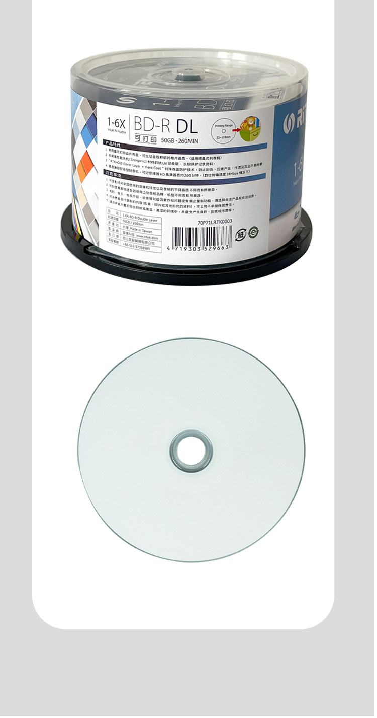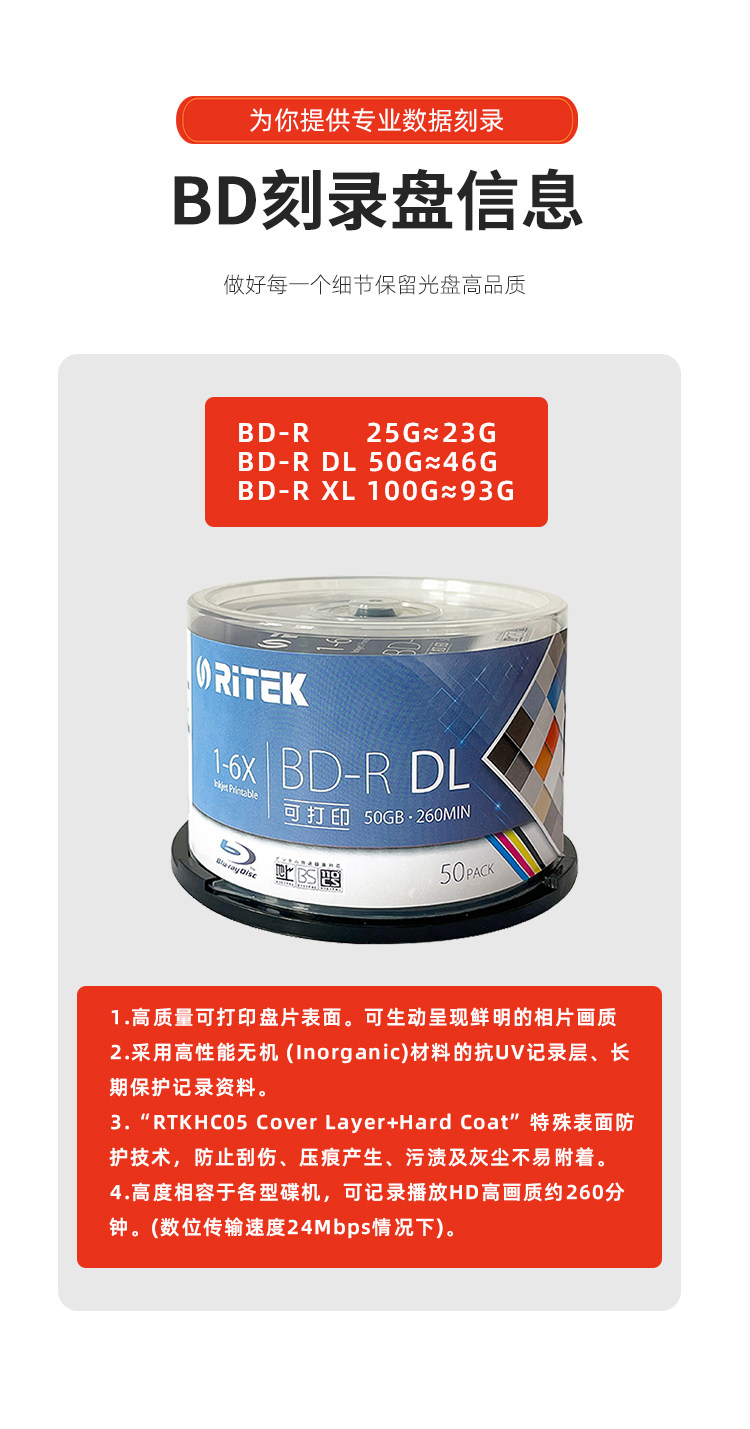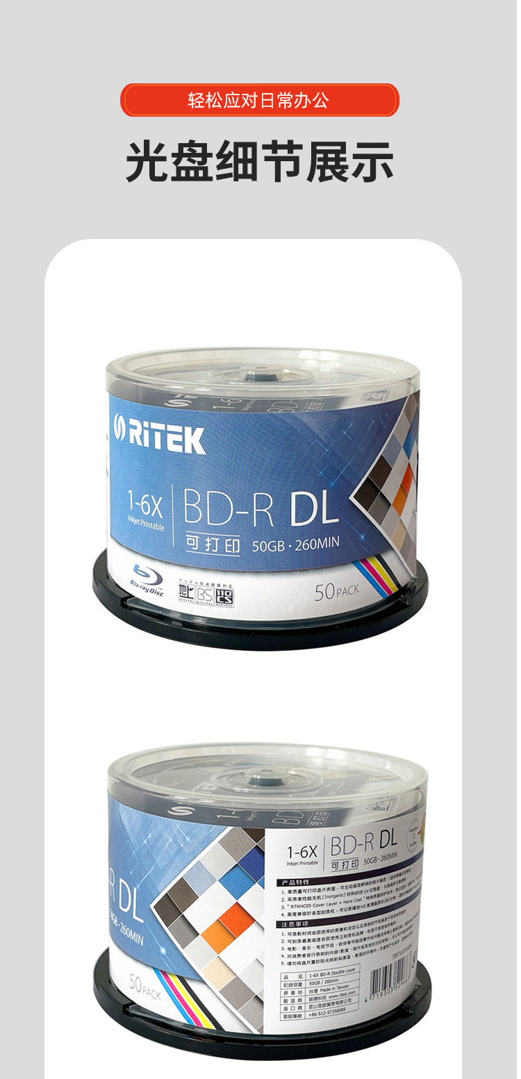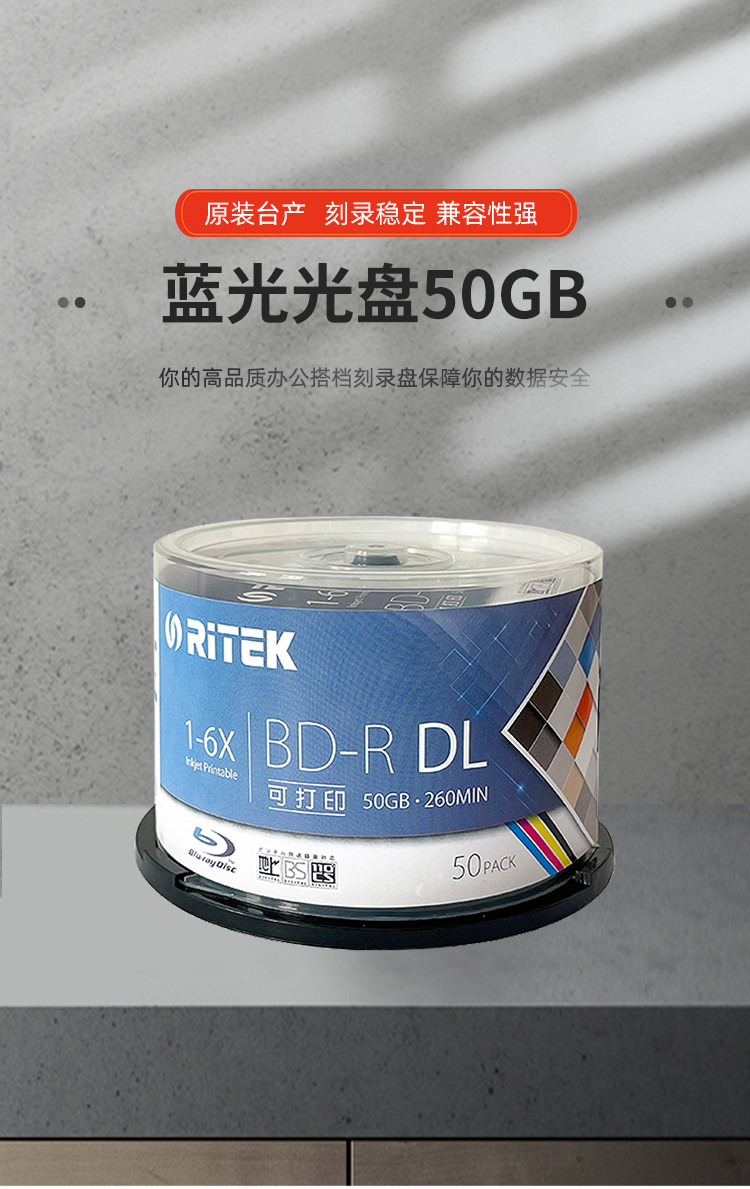 Ritek Blu-Ray 50g Burning Disc Bd-R Dl Printable Large-Capacity Disc 6X Blank Archive Burning Disc