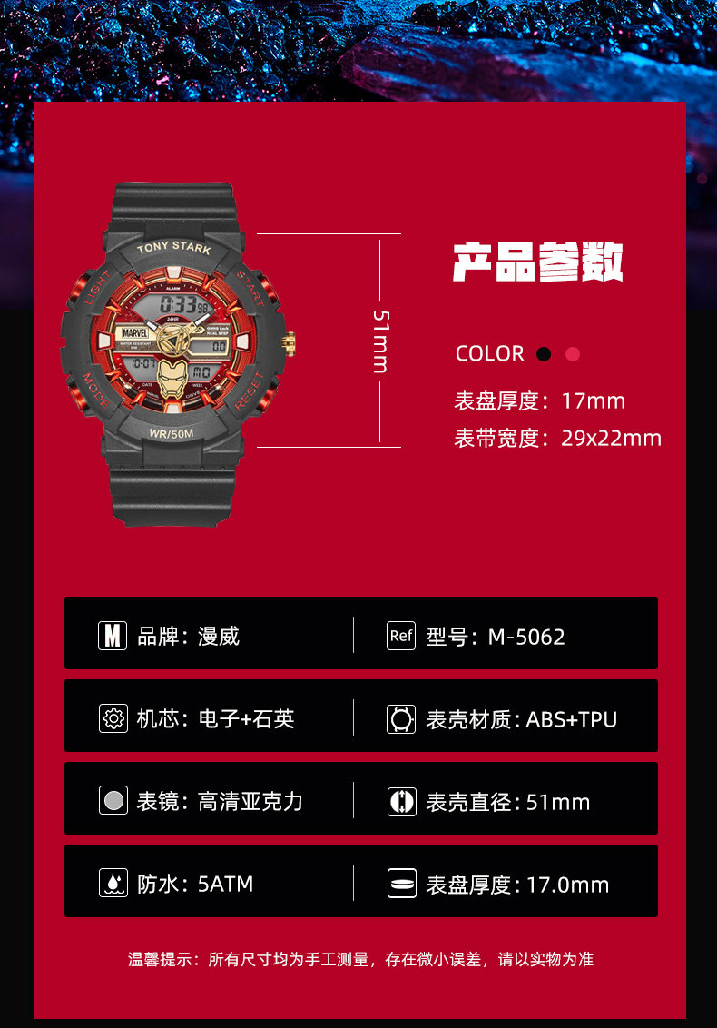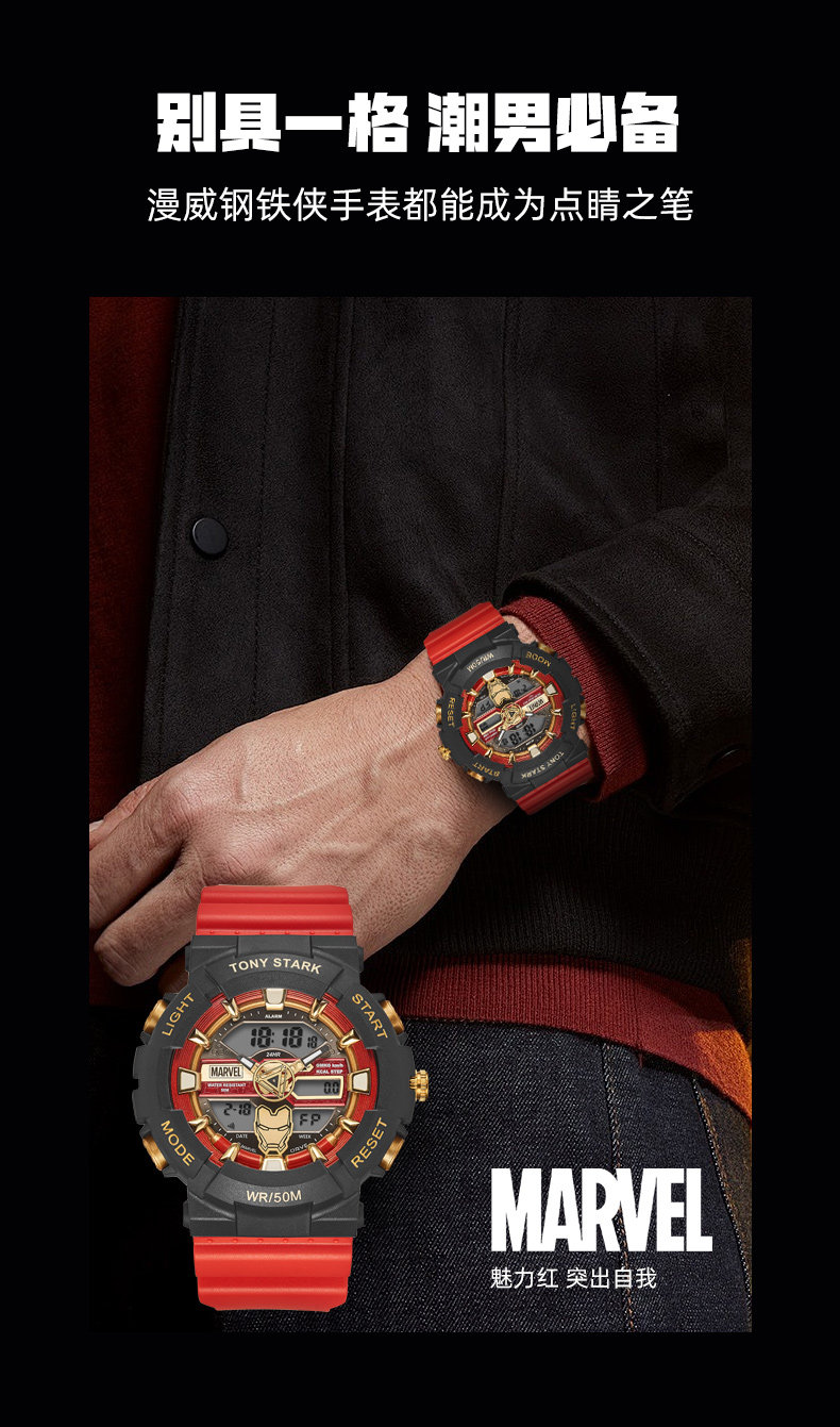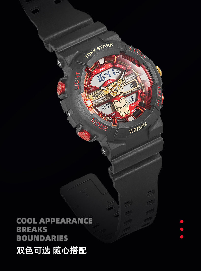 Marvel Co-Branded Watch for Boys, Male Models, Students, Middle and High School Teenagers, Kidsren's Digital Boys' Birthday and New Year's Gifts