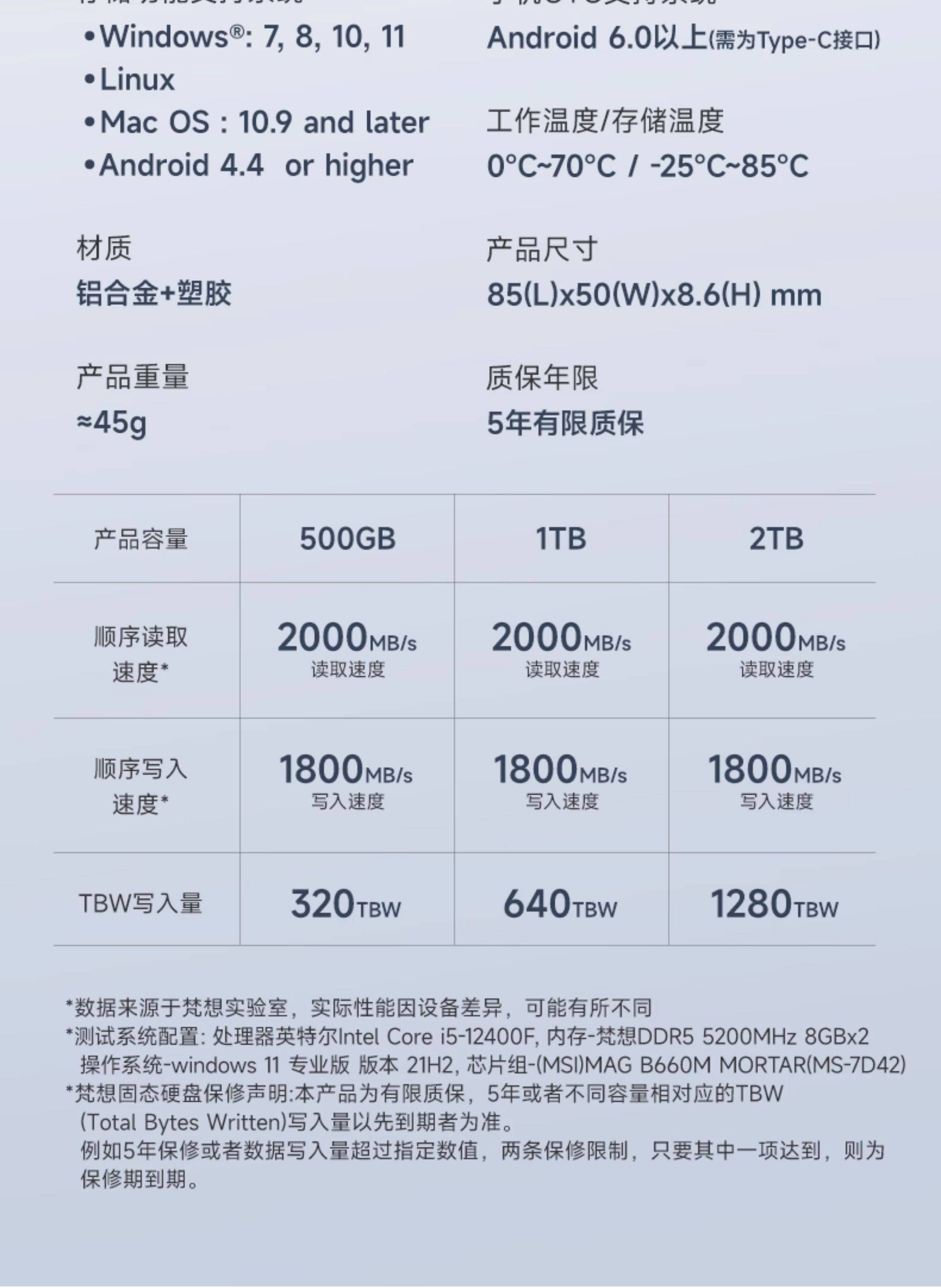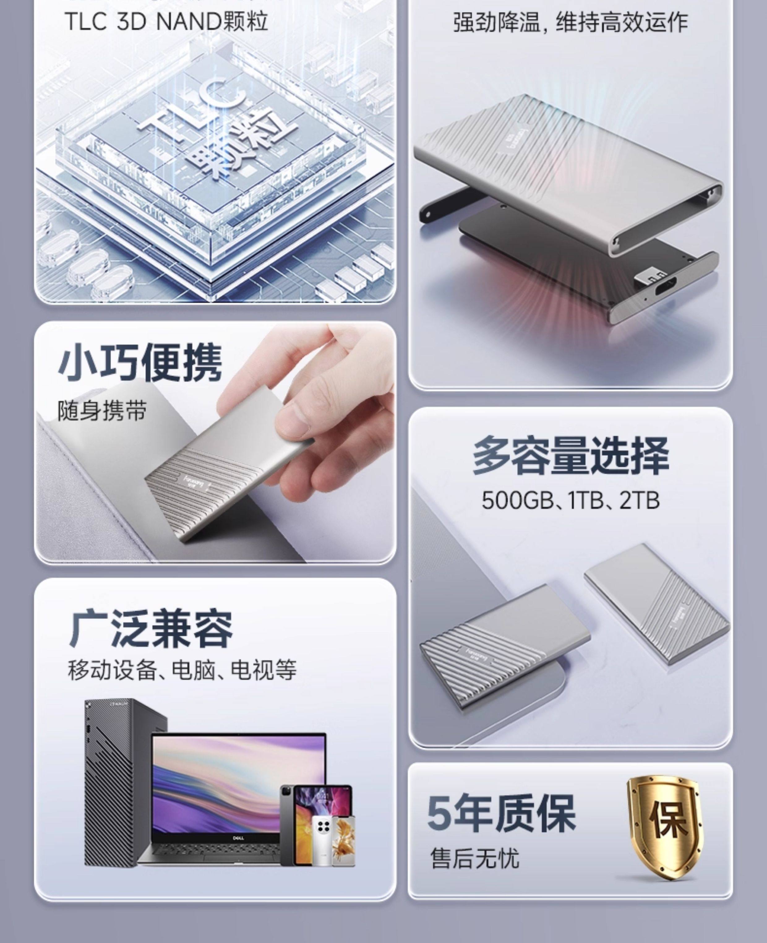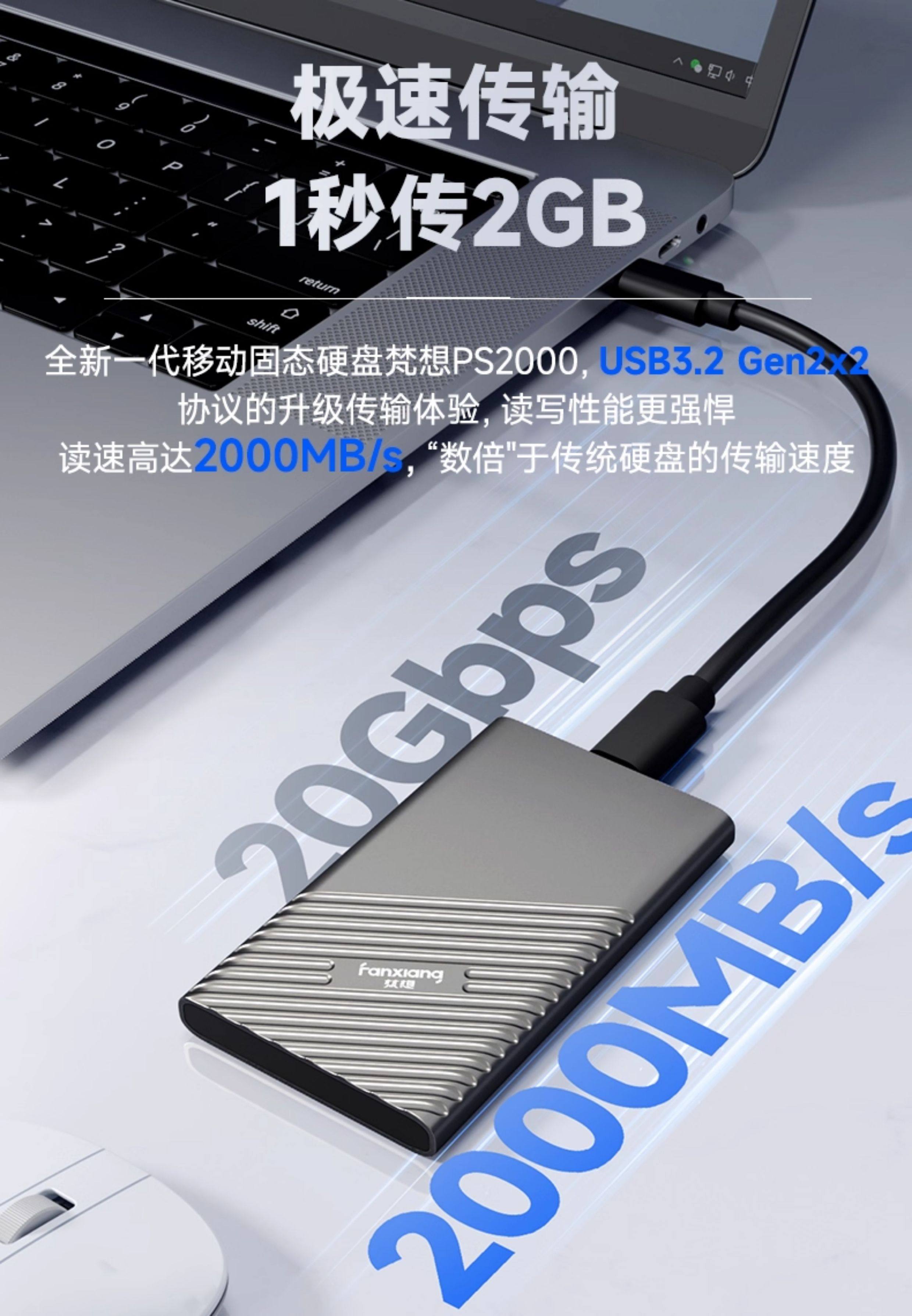 Fanxiang Ps2000 Mobile Hard Drive 1T2T External Hard Drive for Computers and Mobile Phones, High-Speed Solid-State Drive with Large Capacity