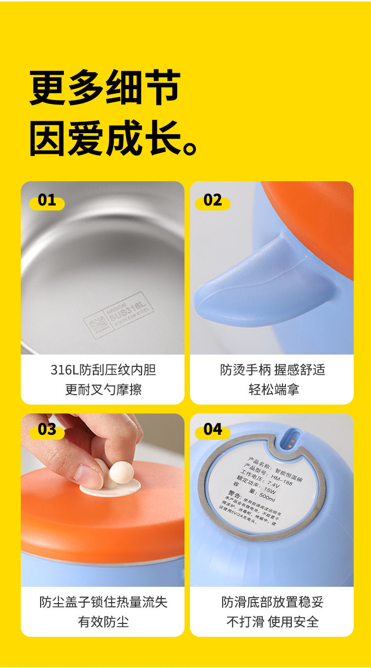 Waterproof Baby Feeding Bowl with Constant Temperature, Smart Rechargeable Food Warmer for Elderly and Adults, Insulated Lunch Box and Plate