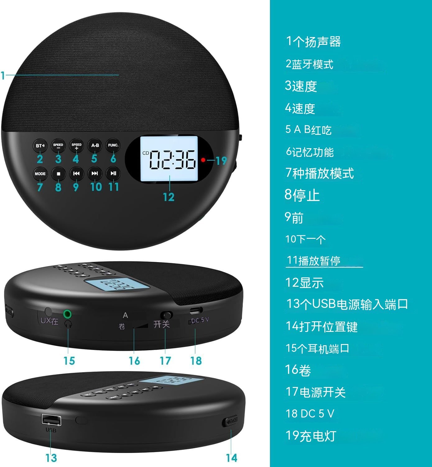 Rechargeable Cd Walkman Player Smart Bluetooth Audio Player Bluetooth USB Repeater External Speaker