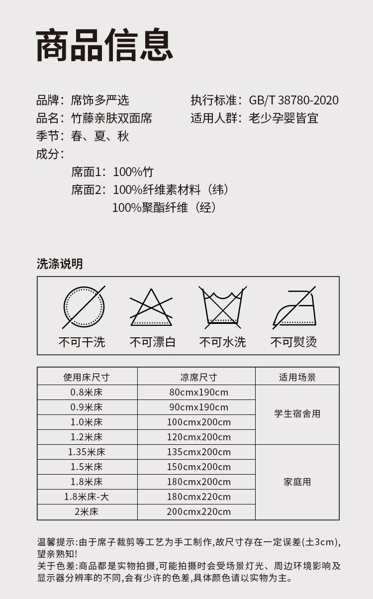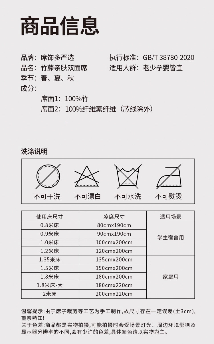 | Color Classification | [Upgraded and Thickened Version]Bamboo and Rattan Double-Sided Skin-Friendly Mat (Without Pillowcase),[Upgraded and Thickened Version]Bamboo and Rattan Double-Sided Skin-Friendly Mat (with Rattan Pillowcase),[Basic Model]Bamboo and Rattan Double-Sided Skin-Friendly Mat (Without Pillowcase),[Basic Model]Bamboo and Rattan Double-Sided Skin-Friendly Mat (with Rattan Pillowcase),[Basic Model]Full Carbon Dual-Purpose Mirror Seat (Without Pillowcase),[Promotional Money]Mugwort All-Carbon Antibacterial Mat (Without Pillowcase),[Promotional Money]Mugwort All-Carbon Antibacterial Mat (with Rattan Pillowcase),[Fashionable Style]Elegant, Hydrating, and Skin-Friendly Bedding Set (Pillowcases Not Included),[Hot Selling Model]Asparagus Bamboo Double-Sided Mugwort Mat (Without Pillowcase),[Hot Selling Model]Asparagus Bamboo Double-Sided Mugwort Mat (with Rattan Pillowcase),[Antique Style]Mugwort Mosquito Repellent Double-Sided Mat (Without Pillowcase),[Antique Style]Mugwort Mosquito Repellent Double-Sided Mat (with Rattan Pillowcase),[Thickened Version] Bamboo and Rattan Moisturizing Polished Mat (with Rattan Pillowcase),[Fashionable Style]Elegant, Hydrating, and Skin-Friendly Mat (with Rattan Pillowcase),[Straight Fit]Nanzhu Moisturizing Mat (with Rattan Pillowcase),[Light Luxury Style] Moisturizing and Polished Ecological Mat (with Rattan Pillowcase),[Mother and Baby Model]Mature Bamboo Eco-Carbonized Mat (with Rattan Pillowcase),[Luxury Model] Thickened Bamboo and Rattan Double-Sided Mat (with Rattan Pillowcase),[Collection]Nanzhu Moisturizing Mat (with Rattan Pillowcase),[Children's Model] Royal Bamboo Alcohol Charcoal Moisturizing Mat (with Pillowcase),[Thickened Version] Bamboo and Rattan Double-Sided Antibacterial Mat (with Pillowcase),[Bestseller] Ancient Rattan Double-Sided Bamboo Mat (Without Pillowcase),[Bestseller] Ancient Rattan Double-Sided Bamboo Mat (with Rattan Pillowcase),[Exclusive Edition]Classic Water-Milled Carbonized Bamboo Sleeping Mat (with Rattan Pillowcase),[Brand Model]Bamboo & Mugwort Wood Grain Mat (with Rattan Pillowcase),[Top Gold Needle Will Win Gold Medal]Qinhe Iced Bamboo Mat (with Rattan Pillowcase) |