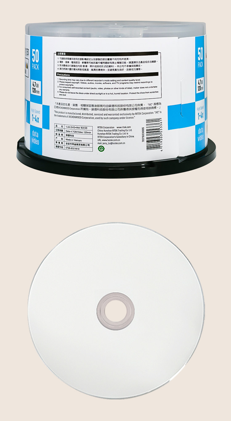 | Color Classification | Jvc Printable and Rewritable Dvd+Rw 10 Pieces in a Barrel,Jvc Printable and Rewritable Dvd+Rw 10 Pieces in a Barrel + Medium Thick Bag with Pen,Jvc Printable and Rewritable Dvd+Rw 50 Pieces in a Barrel,Jvc Printable and Rewritable Dvd+Rw 50 Pieces in a Barrel + Medium Thick Bag with Pen |