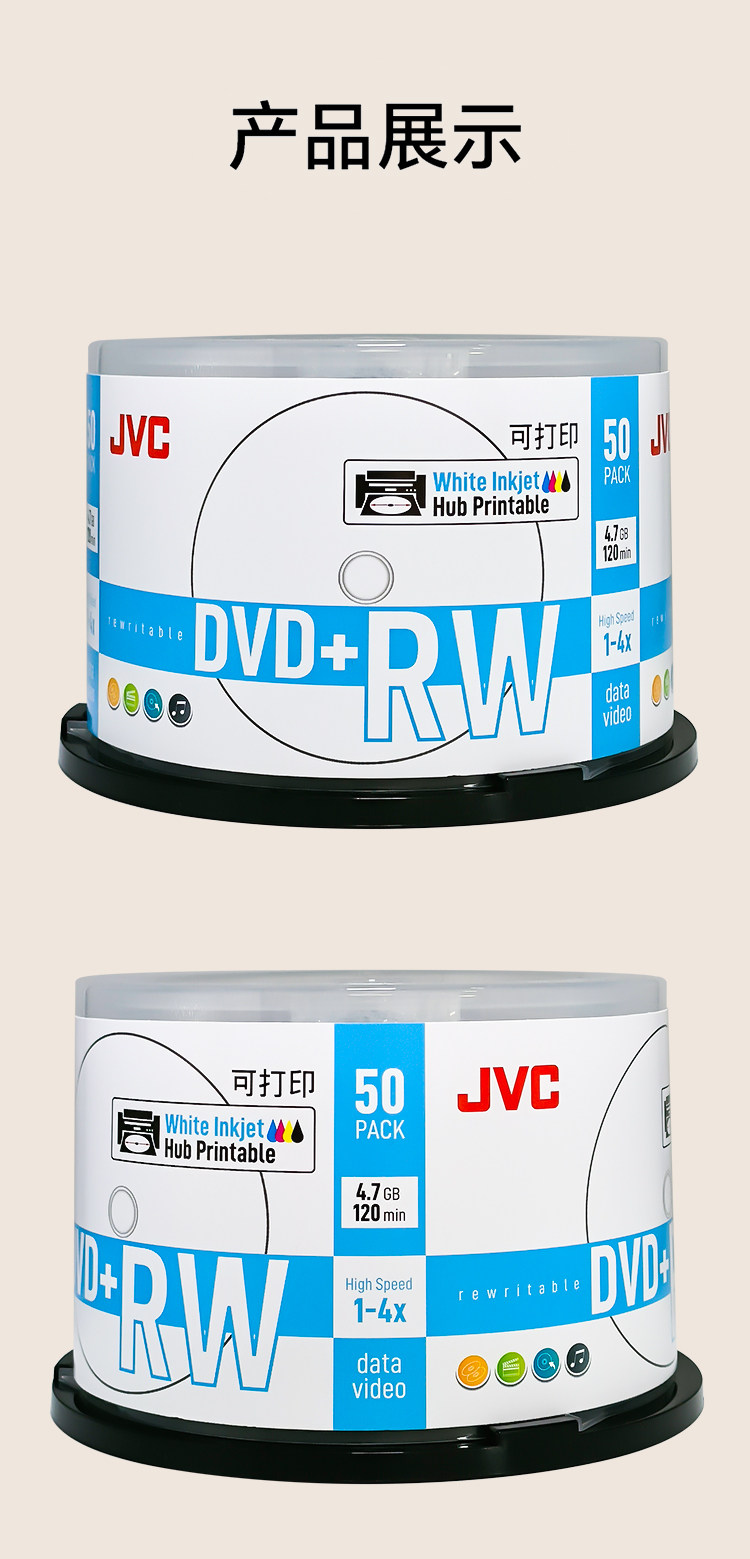 Jvc Printable and Rewritable Dvd Burning Disc 4.7Gb Dvd+Rw Repeatedly Rewritable Disc 4X Blank Disc