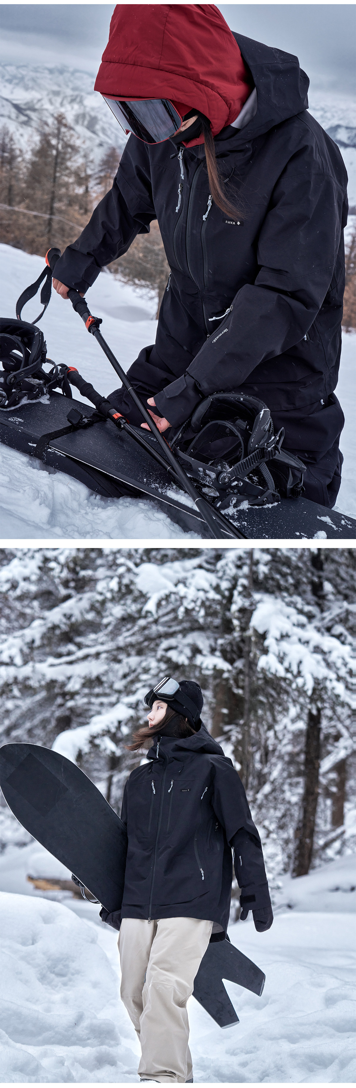Awka Snowboarding Jacket for Women and Men, Winter Loose Waterproof 3L Professional 2025 New Trendy Outerwear Top