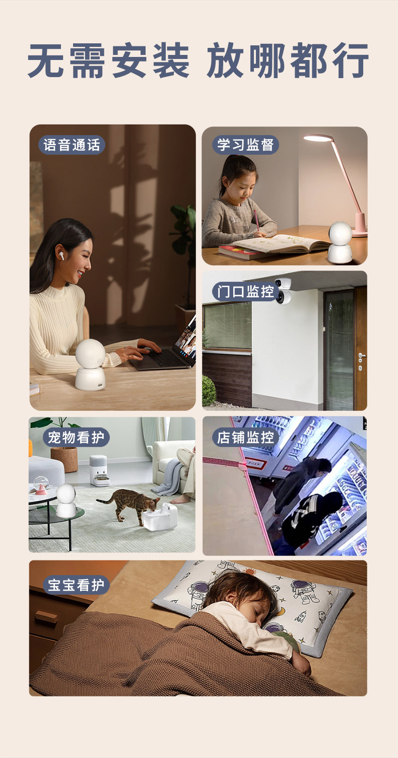 Wireless Camera Monitor for Home Use, Remote Smart Voice Control, 360-Degree No Blind Spots, Indoor High-Definition Night Vision