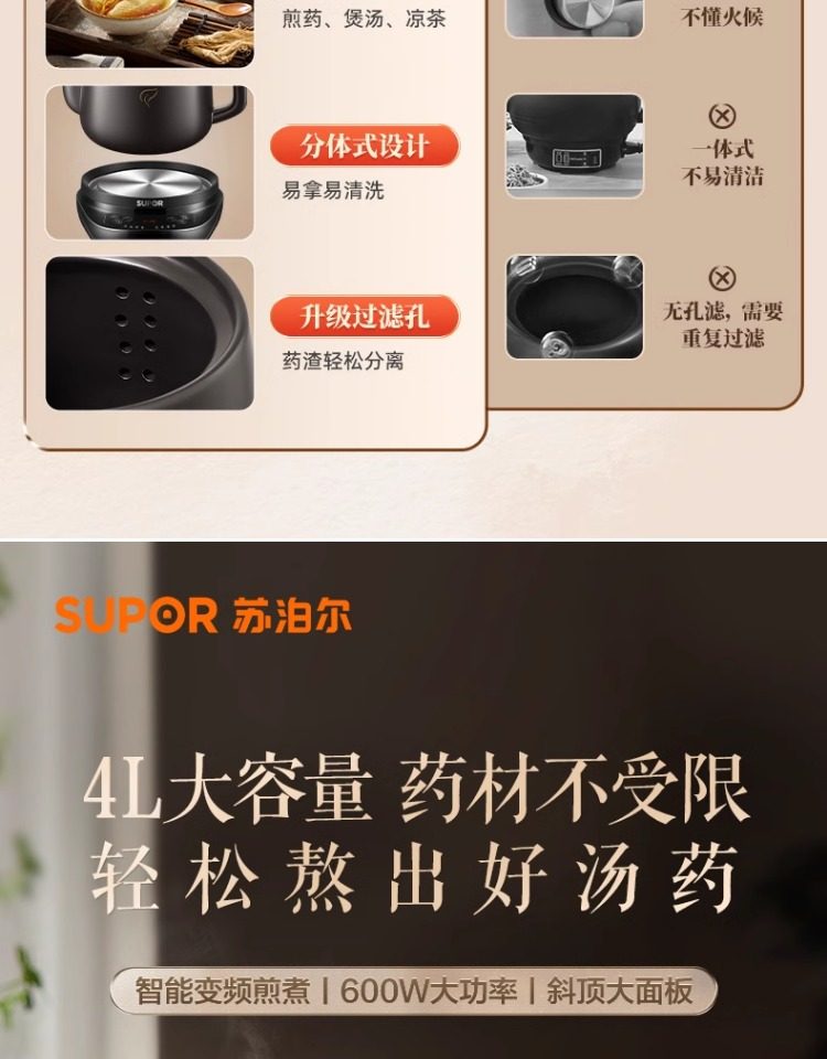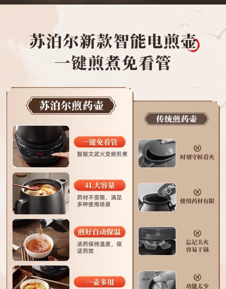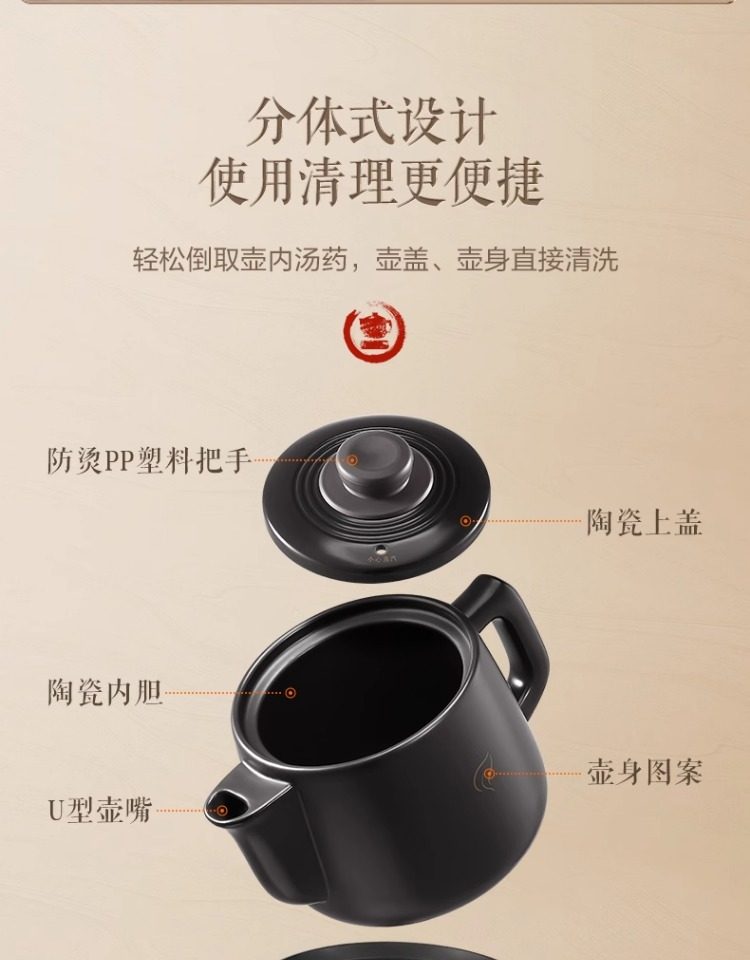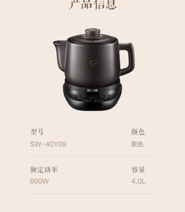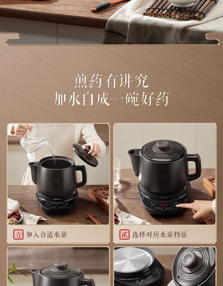 Supor Electric Herbal Decoction Pot for Home Use, Fully Automatic Health-Preserving Ceramic Purple Clay Pot Machine for Boiling Traditional Medicine