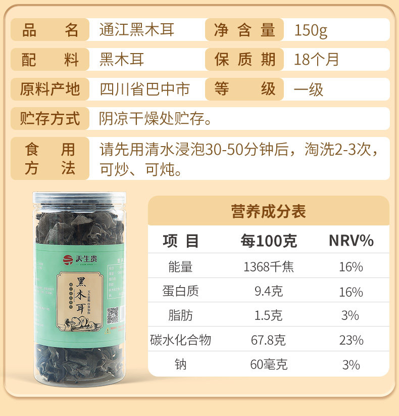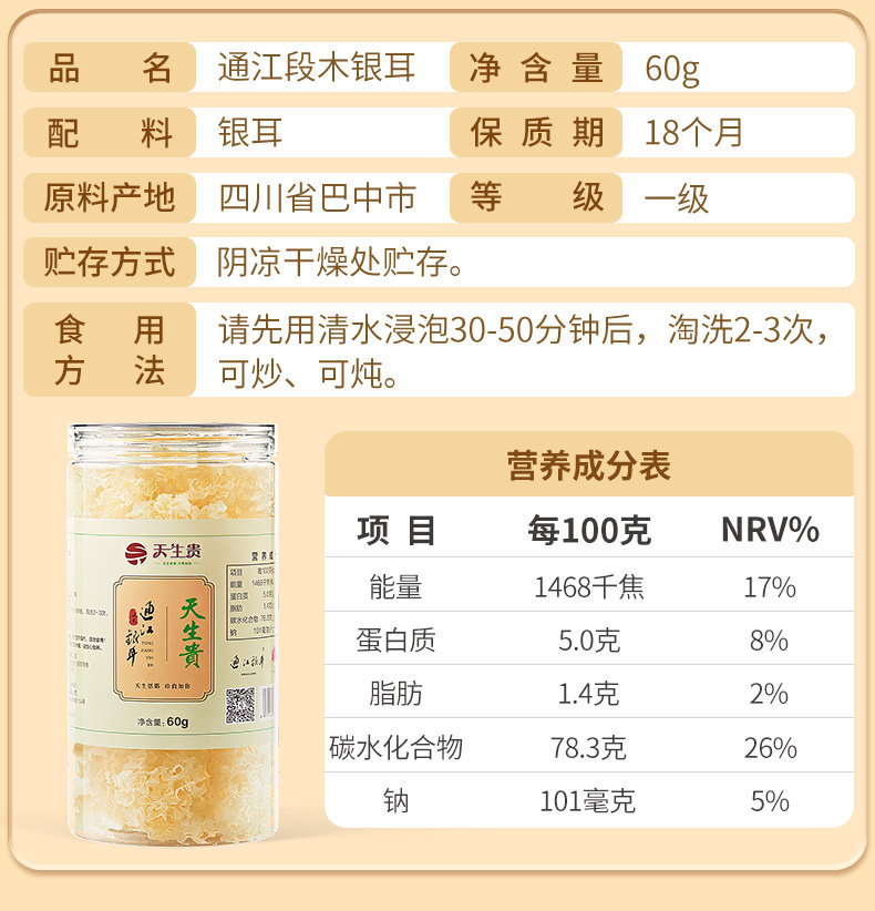 | Product Name | Tongjiang Snow Fungus, Grade A, 60 Grams |