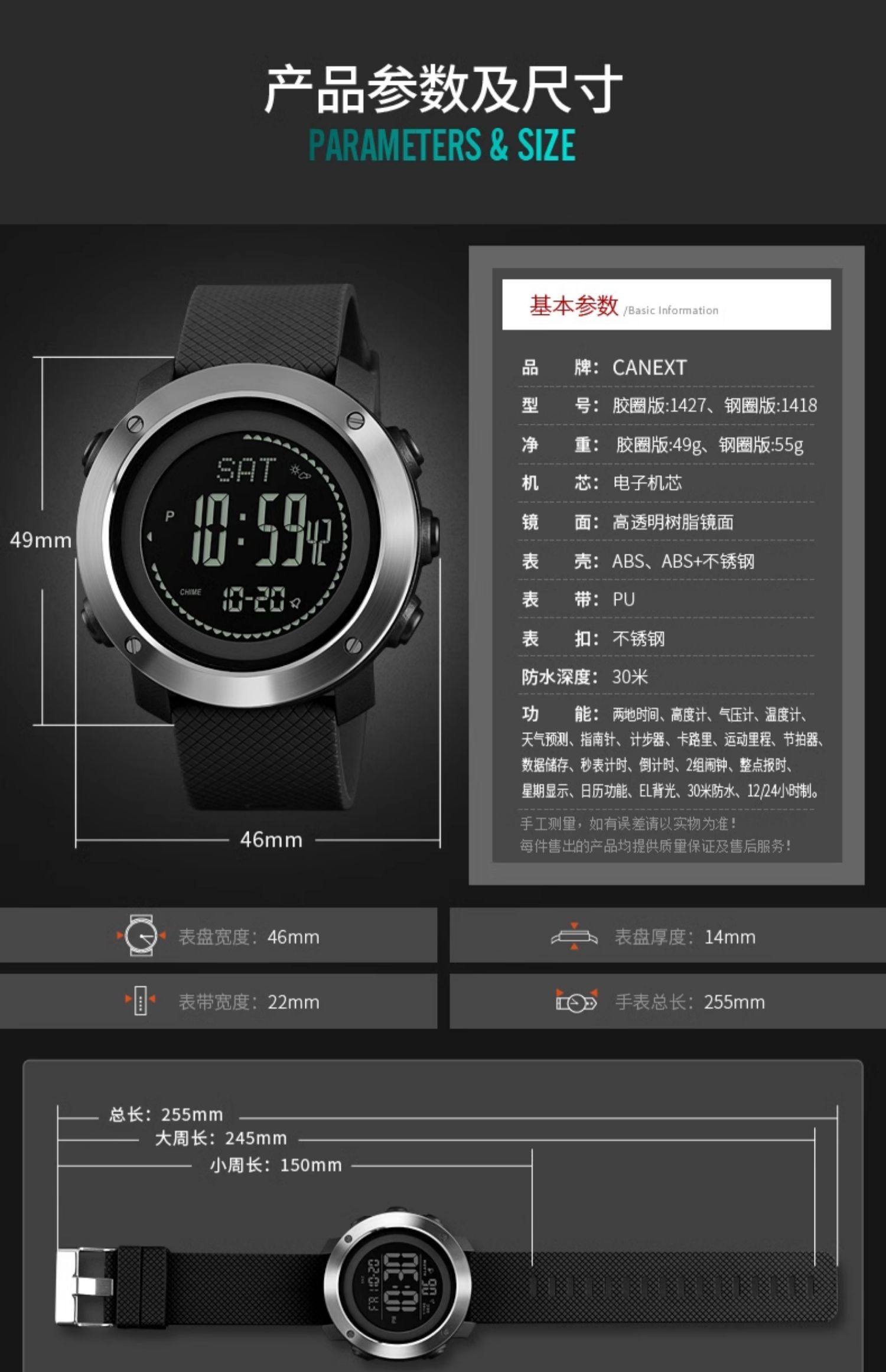 | Color Classification | Outdoor Upgraded Model-Black Steel Rim[Enhanced Movement/Functionality for Improved Stability],Outdoor Upgraded Model-Black Rubber Ring[Enhanced Movement/Functionality for Improved Stability],Outdoor Upgraded Model-Military Green Rubber Ring[Enhanced Movement/Functionality for Improved Stability],Outdoor Model-Black Steel Ring[2 Sets of Alarm Clocks + Air Pressure Height Measurement + Compass + Thermometer + Deep Waterproof],Outdoor Model-Black Rubber Ring[2 Sets of Alarm Clocks + Air Pressure Height Measurement + Compass + Thermometer + Deep Waterproof],Outdoor Model-Military Green Rubber Ring[2 Sets of Alarm Clocks + Air Pressure Height Measurement + Compass + Thermometer + Deep Waterproof],Ordinary Model-Black Rubber Ring[Timed Alarm Clock + Wearable Swimming + Luminous Display],Ordinary Model-Black and White Rubber Ring[Timed Alarm Clock + Wearable Swimming + Luminous Display],Ordinary Model-Black Steel Ring[Timed Alarm Clock + Wearable Swimming + Luminous Display],Ordinary Model-Military Green Alloy Steel Rim[Timed Alarm Clock + Wearable Swimming + Luminous Display],★Exclusive Gift-Giving Model-All Black[Sup Genuine + + Exquisite Gift Box],★Exclusive Gift-Giving Model-Black Silver[Sup Genuine + + Exquisite Gift Box],★Exclusive Gift-Giving Model-Black and Blue[Sup Genuine + + Exquisite Gift Box] |