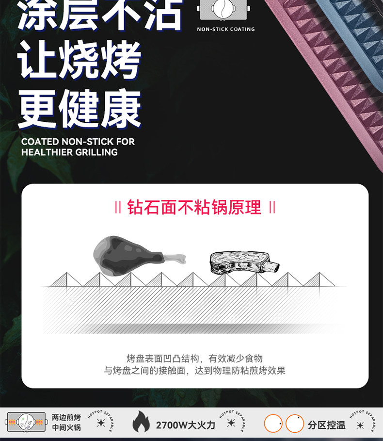 Jie'Anxi Electric Grill Multifunctional Smokeless Barbecue Machine Household Electric Grill Pan Shabu-Shabu Fish Indoor Hot Pot All-In-One Pot