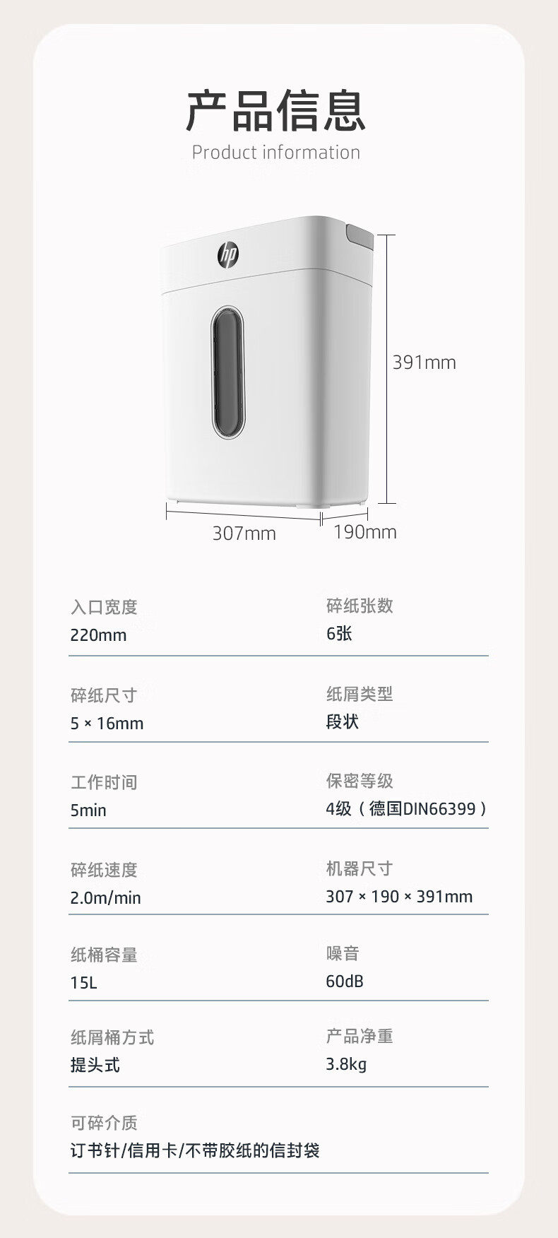 Hp Shredder for Office Use, Large Capacity, Confidential, Small Home Document Shredder, Electric Commercial Shredder