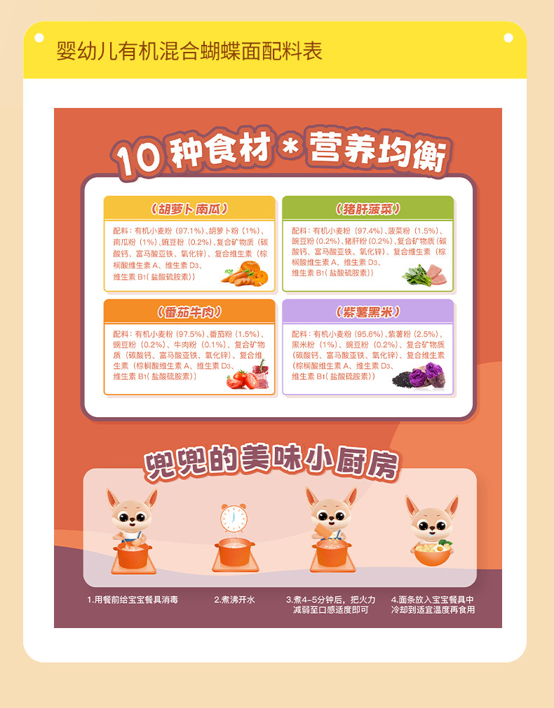 Beidou Organic Baby Noodles Nutritional Baby Butterfly Noodles No Added Salt Children's Noodles Weekly Germ Noodles Complementary Food