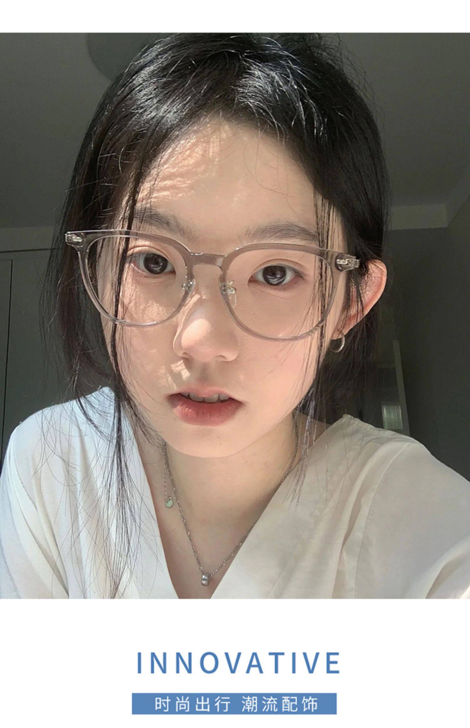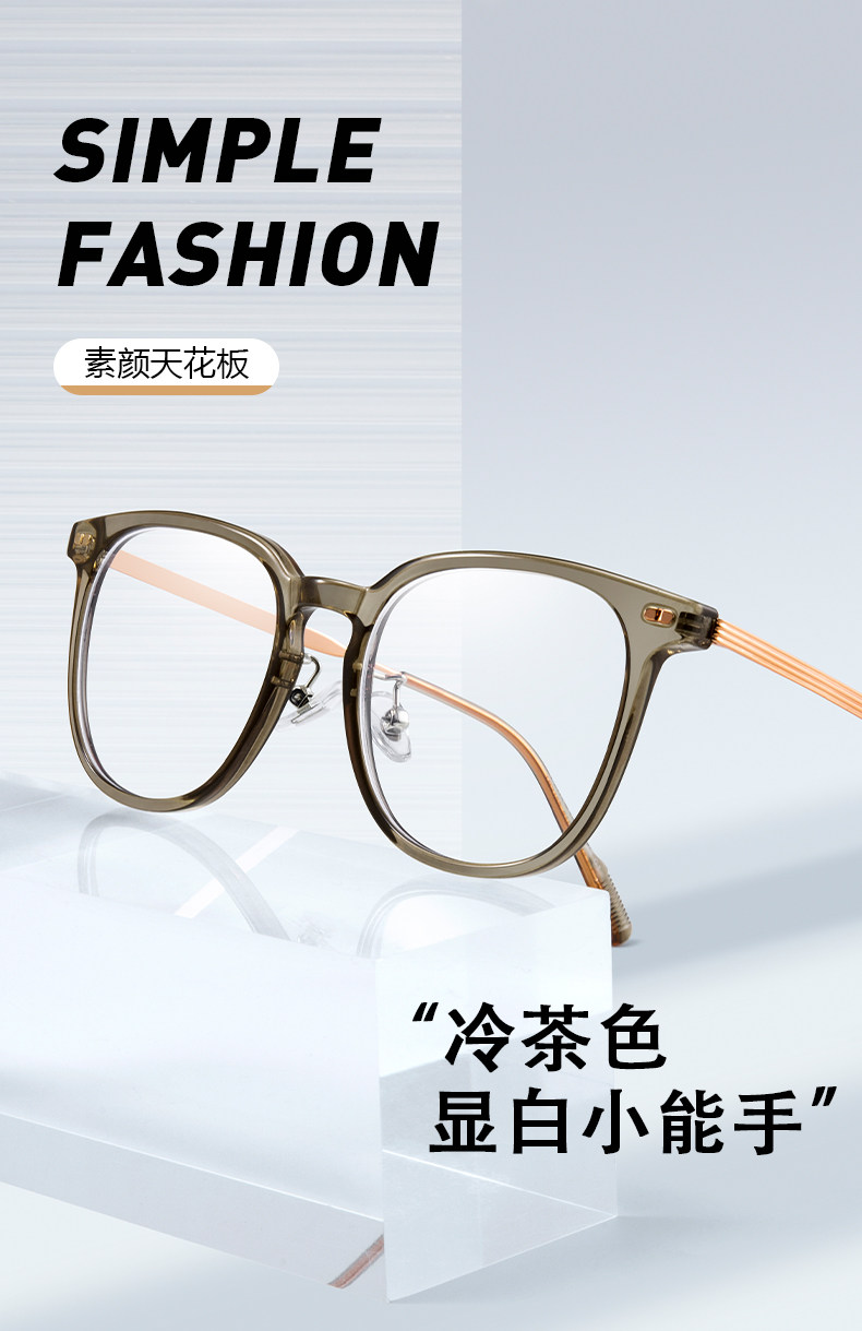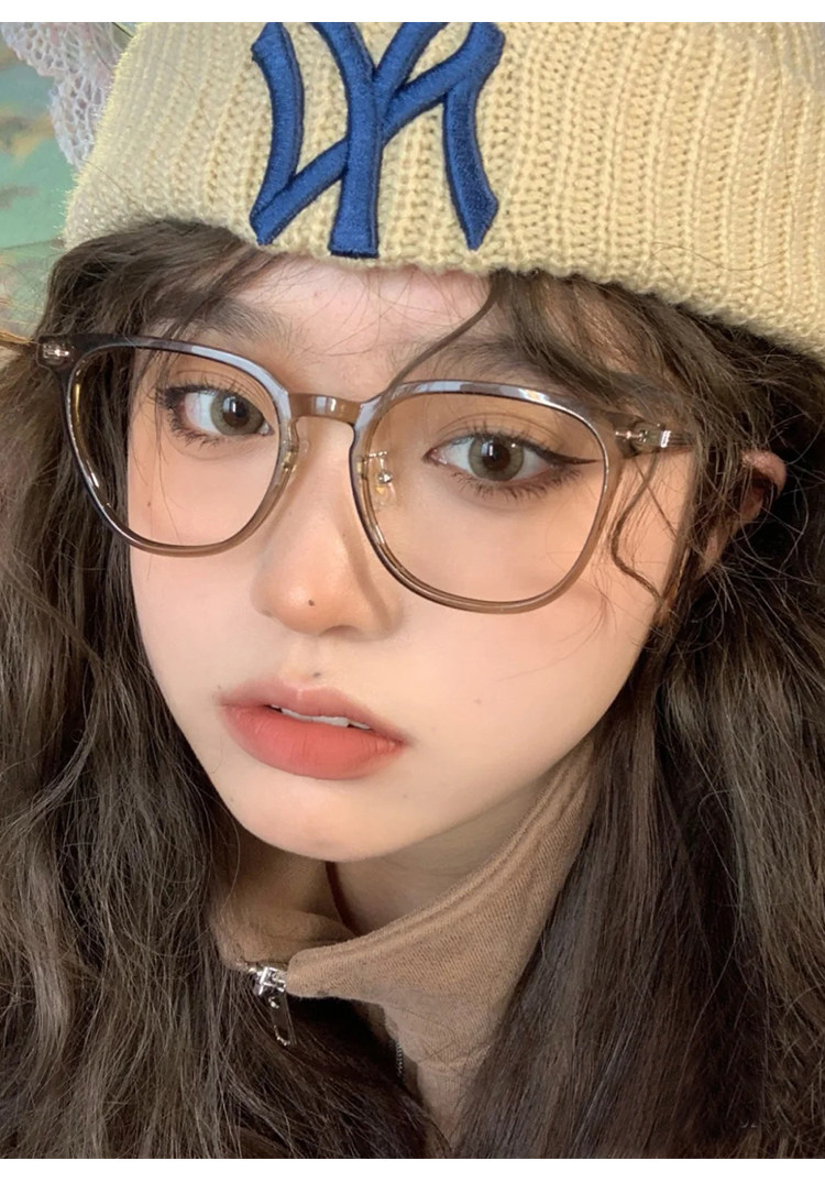Cold Tea-Colored Myopia Glasses Frame for Women, Ultra-Light, Large Frame, Can Be Customized with Prescription, Astigmatism, Suitable for Square and Round Faces, Anti-Blue Light, Natural Look Eyeglass Frame