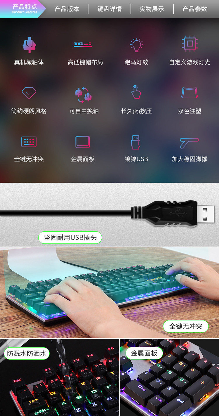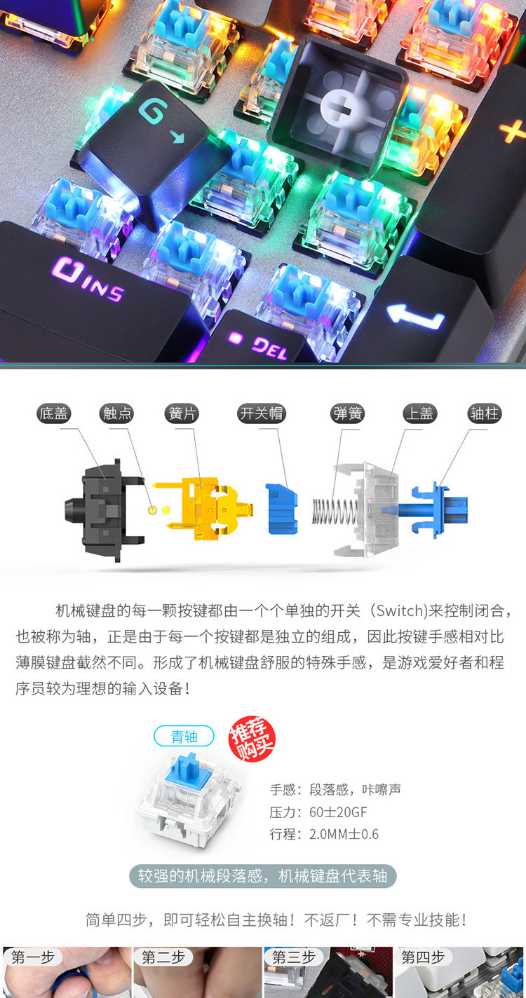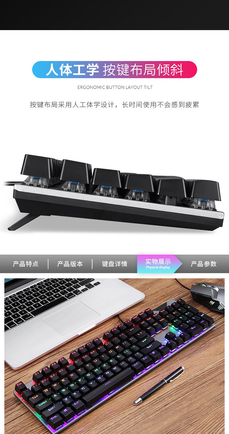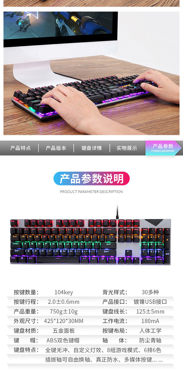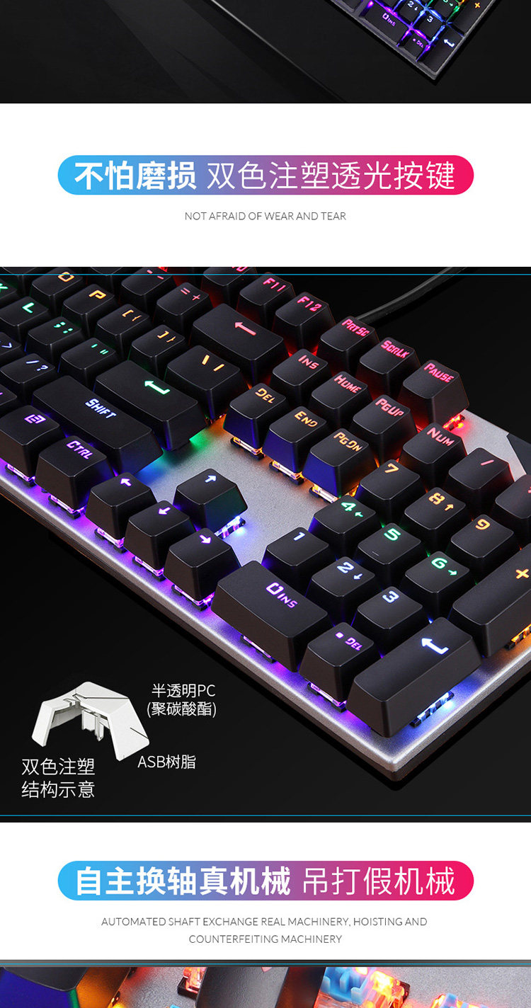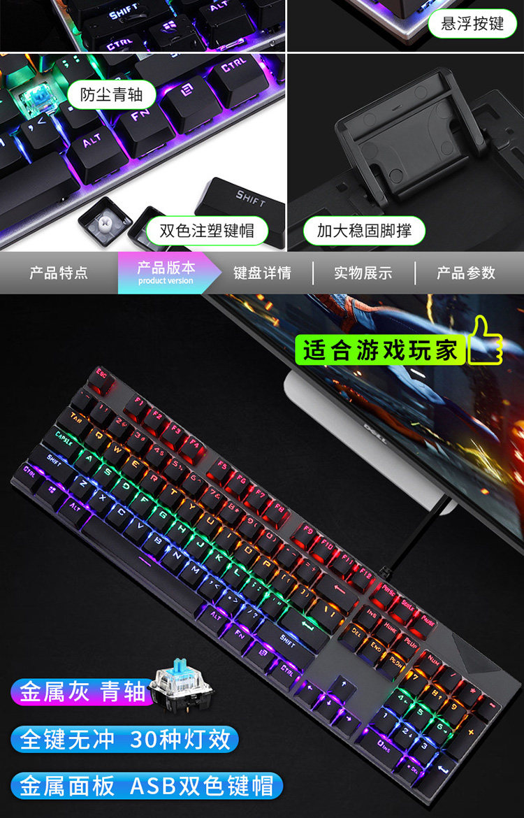 Leikui Wired Mechanical Keyboard with Blue Switches, Backlit, Gaming, E-Sports, Standard USB Connection, Supports Desktop and Notebook