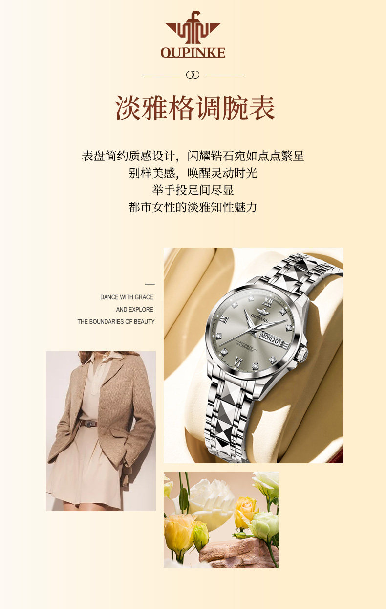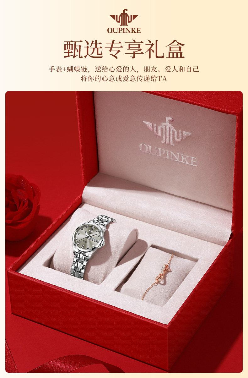 Swiss Oupinke Brand Genuine Luxury Niche High-End Women's Watch Fully Automatic Mechanical Watch for Women