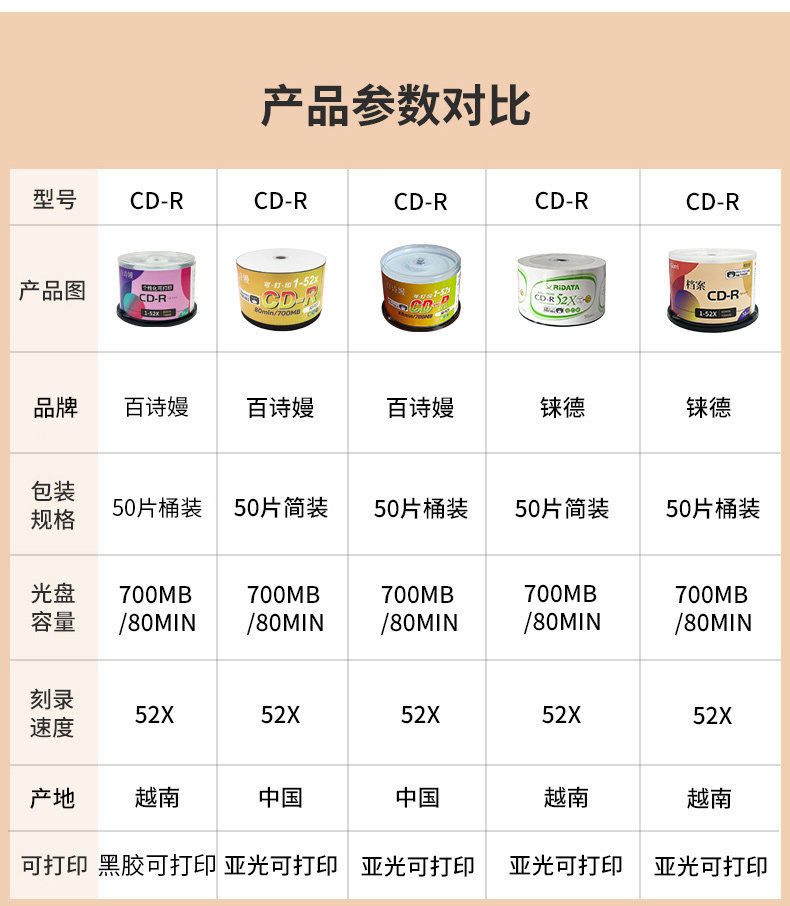 | Color Classification | Baisiman Printable Cd-R 50 Pieces Plastic Package,Baisiman Printable Cd-R 50 Pieces in a Barrel,Vinyl Half Circle Cd-R 50 Pieces in a Barrel,Raiden Business Printable Cd-R 50-Pack, Plastic Sleeves,Raiden Archives Printable Cd-R 50 Pieces in a Barrel,Raindance Waterproof Printable Cd-R 50 Pieces in Barrel,Raiden Office Printable Cd-R 50-Pack,Raiden Printing No. 1 Cd-R 50 Pieces in a Barrel,Radium Black Vinyl Small Circle Printable Cd-R 25 Pieces in a Barrel,Radium Black Vinyl Printable Cd-R 25 Pieces in a Barrel,Jvc Printable Cd-R 50 Pieces Plastic Package,Jvc Printable Cd-R 50 Pieces in a Barrel,Jvc Taiwan-Made Archival Printable Cd-R 50 Pieces in a Barrel |
