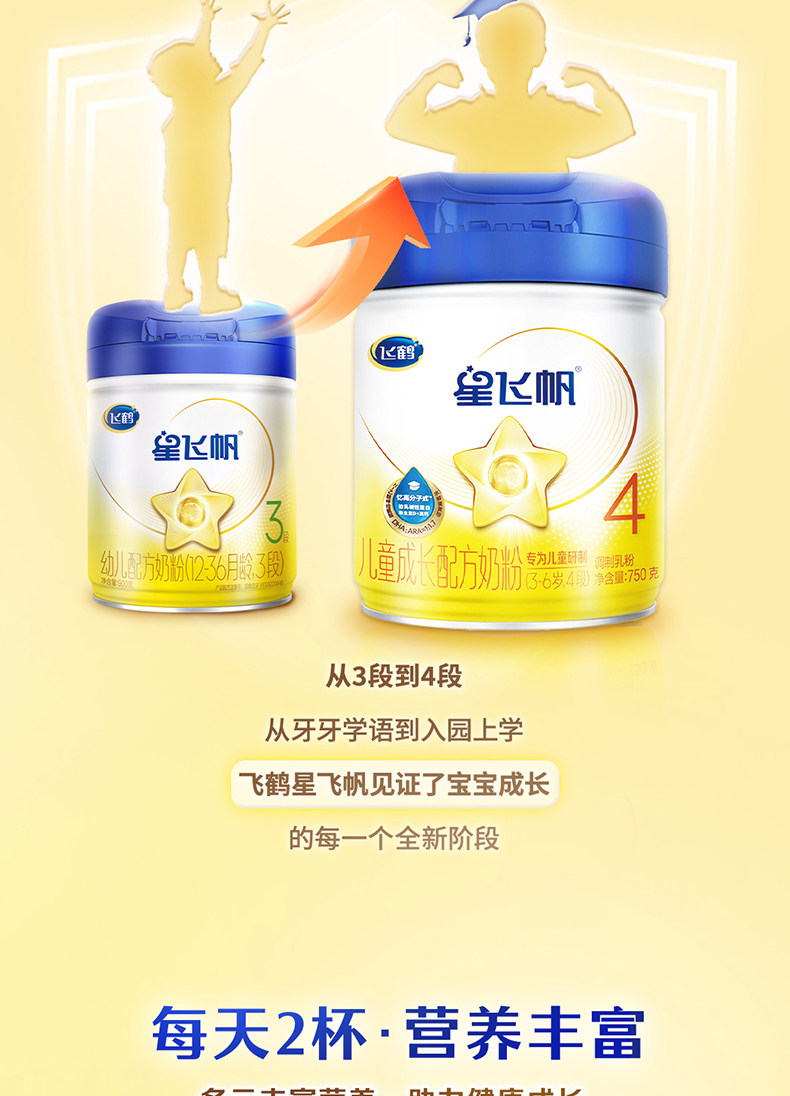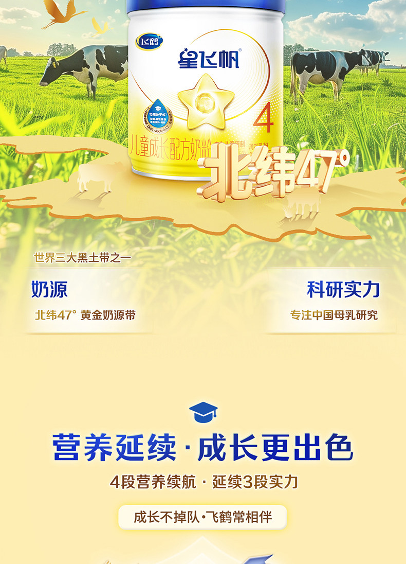 [Unlimited Brain Power Upgrade] Feihe Xing Feifan Children's Growth Formula Milk Powder Stage 4 for 3-6 Years Old 750g*2 Cans
