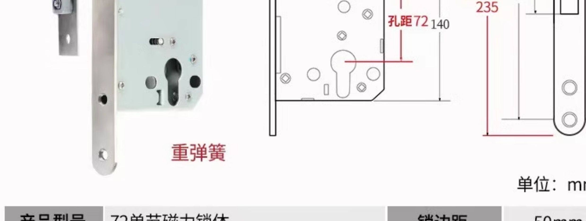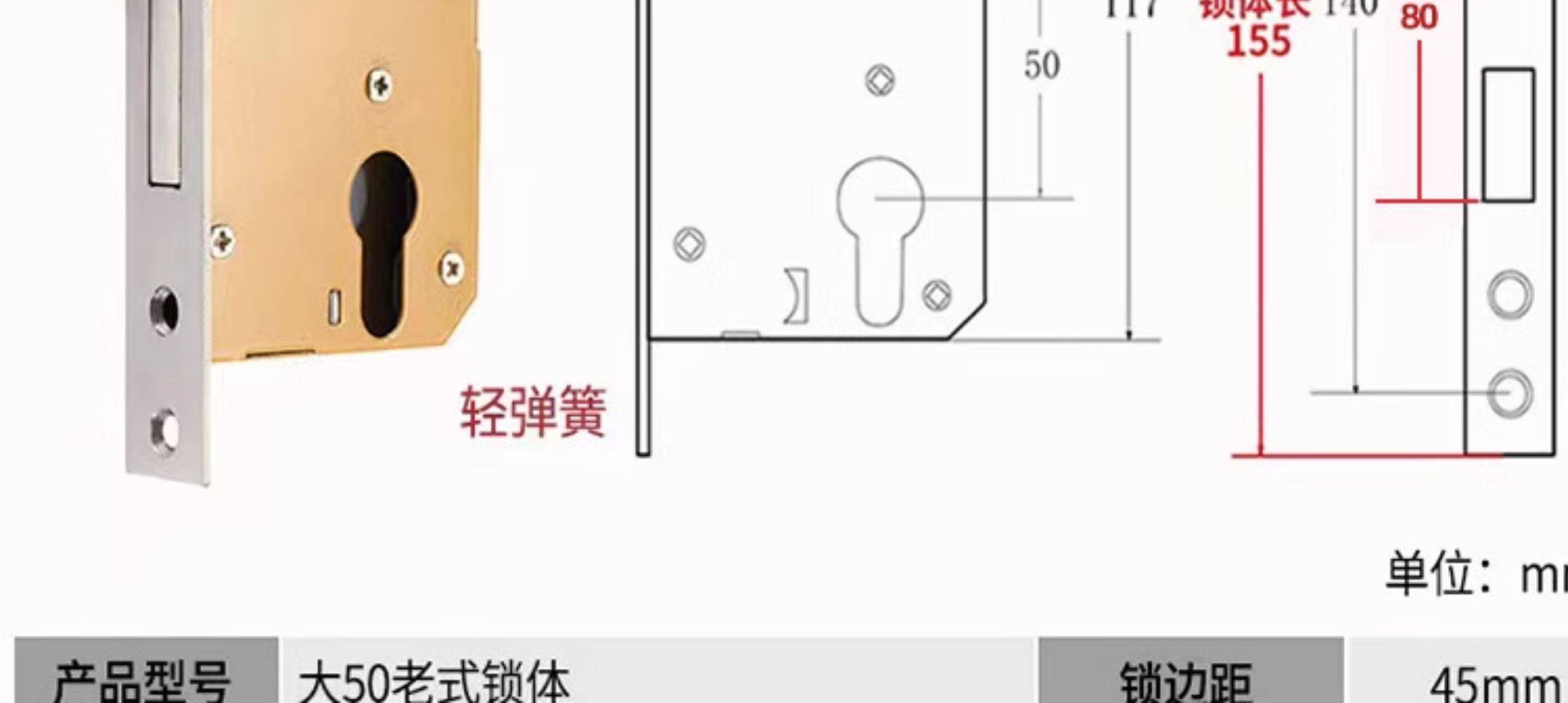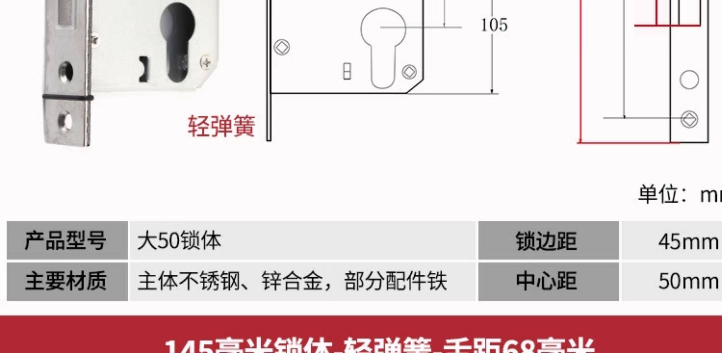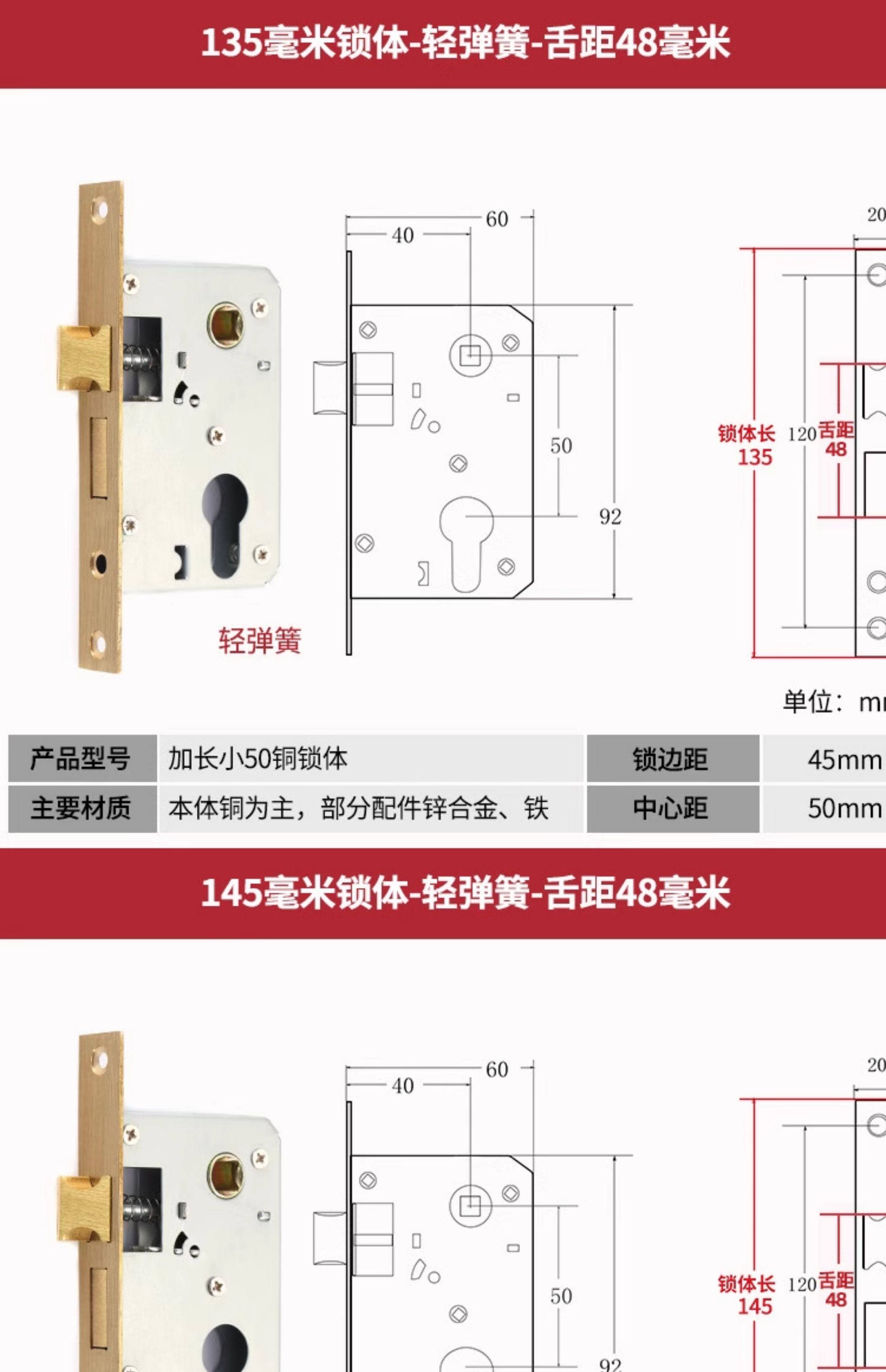 | Color Classification | Small 70 Stainless Steel Color One Copper Lock Core/Copper Key,Small 70 Black One Copper Lock Core/Copper Key,Small 70 Gold One Copper Lock Core/Copper Key,Small 70 Pure Copper Lock Cylinder One Copper Lock Cylinder/Copper Key,125 Small 50 Old-Fashioned - Light Spring - Tongue Distance 48,125 Small 50 Copper--Light Spring-Tongue Distance 48,125 Small 50 Copper Reverse Lift-Light Spring-Tongue Distance 48,125 Small 50 Bearing-Light Spring-Tongue Distance 60,125 Small 50 Silent Double Tongue-Light Spring-Tongue Distance 60,Reverse Lift 125 Small 50 Silent - Light Spring - Tongue Distance 60,135 Small 50 Copper-Light Spring-Tongue Distance 48,138 Old-Fashioned Large 50-Light Spring-Tongue Distance 60,145 Small 50 Copper-Light Spring-Tongue Distance 48,145 Old-Fashioned Large 50-Light Spring-Tongue Distance 65,145 Copper Large 50-Light Spring-Tongue Distance 68,145 Old Style Large 50-Light Spring-Tongue Distance 75,148 Old-Fashioned Large 50-Light Spring-Tongue Distance 65,148 Old-Fashioned Large 50-Light Spring-Tongue Distance 75,155 Old-Fashioned Large 50-Light Spring-Tongue Distance 65,155 Old-Fashioned Large 50-Light Spring-Tongue Distance 80,160 Large 50 Linkage-Key Door Opening-Light Spring-Tongue Distance 80,Reverse Lift 160 Large 50 Silent - Light Spring - Tongue Distance 85,Reverse Lift 160 Large 50 Bearing-Light Spring-Tongue Distance 85,160 Large 50 Silent-Light Spring-Tongue Distance 85,160 Large 50 Silent-Heavy Spring-Tongue Distance 85,Reverse Lift 160 Large 50 Three-Prong Silent High-End - Light Spring - Tongue Distance 85,160 High-End Large 50 Magnetic-Light Spring-Tongue Distance 88,165 High-End Old-Fashioned 58-Heavy Spring-Tongue Distance 93,170 Large 50 Silent Three-Prong-Light Spring-Tongue Distance 85,170 High-End Old-Fashioned 58-Heavy Spring-Tongue Distance 93,170 Long 58 Silent-Heavy Spring-Tongue Distance 93,170 High-End 58 Silent Three-Prong-Heavy Spring-Tongue Distance 95,Anti-Lift 170 High-End 58 Silent Three-Prong-Heavy Spring-Tongue Distance 95,170 High-End One Section 58 Magnetic - Heavy Spring - Tongue Distance 40,170 High-End Two-Section 58 Magnetic-Heavy Spring-Tongue Distance 93,178 Round Head 5845-Heavy Spring-Tongue Distance 93,180 Round Head 5845-Heavy Spring-Tongue Distance 95,180 Square Head High-End 58 Silent Three-Prong-Heavy Spring-Tongue Distance 95,180 Rectangular Head 7250-Heavy Spring-Small Hoist Hole,190 Long 7250-Heavy Spring-Small Hoist Hole,190 Long Round Head 7250-Heavy Spring-Small Hoist Hole,235 Long Round Head 7250-Heavy Spring-Small Hoist Hole,235 Long 72 Magnetic Section - Small Gourd,235 Long 7260 Round Head-Heavy Spring-Tongue Distance 115,240 Long 7255-Heavy Spring-Tongue Distance 115,240 Long 8550-Heavy Spring-Tongue Distance 125,240 Long 8560-Heavy Spring-Tongue Distance 125,Small 70 Stainless Steel Lock Cylinder with Zinc Core/Steel Key |