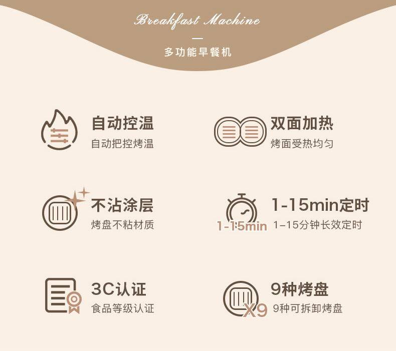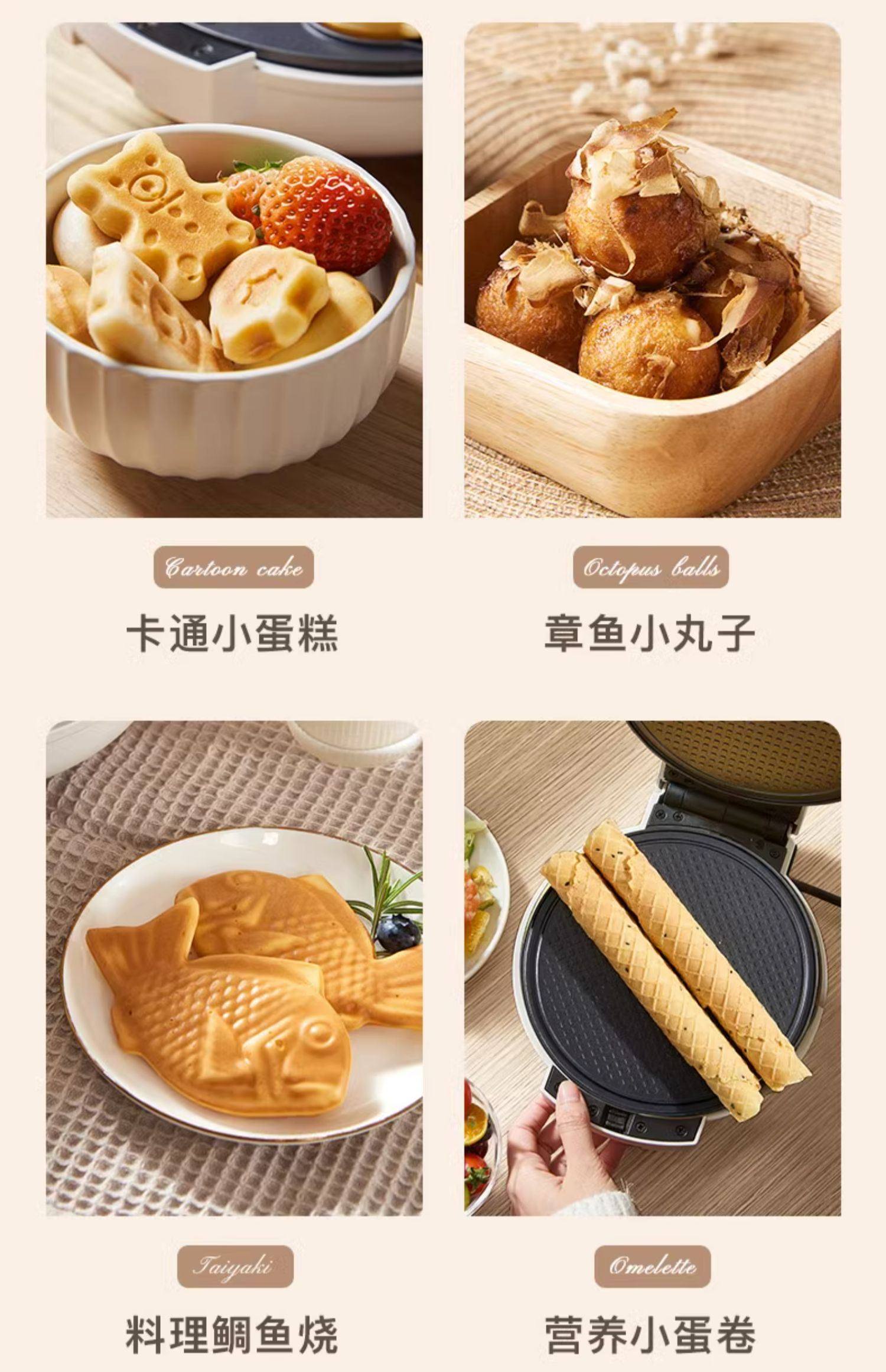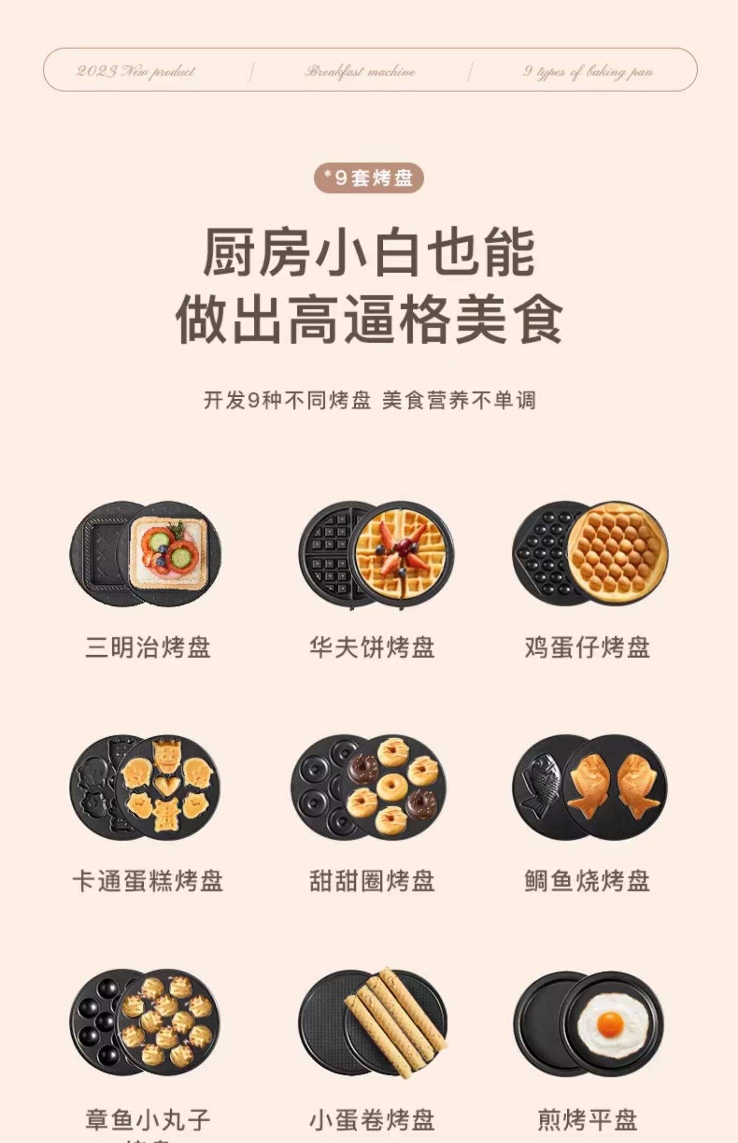 | Baking Pan Function | Baked Cake,Grilling & Toasting,Baked Donuts,Grilled Sandwich,Make Egg Waffles,Baked Fruit Tart,Pancake,Pancake/Pancake,Grilled Taiyaki,Make Egg Rolls |