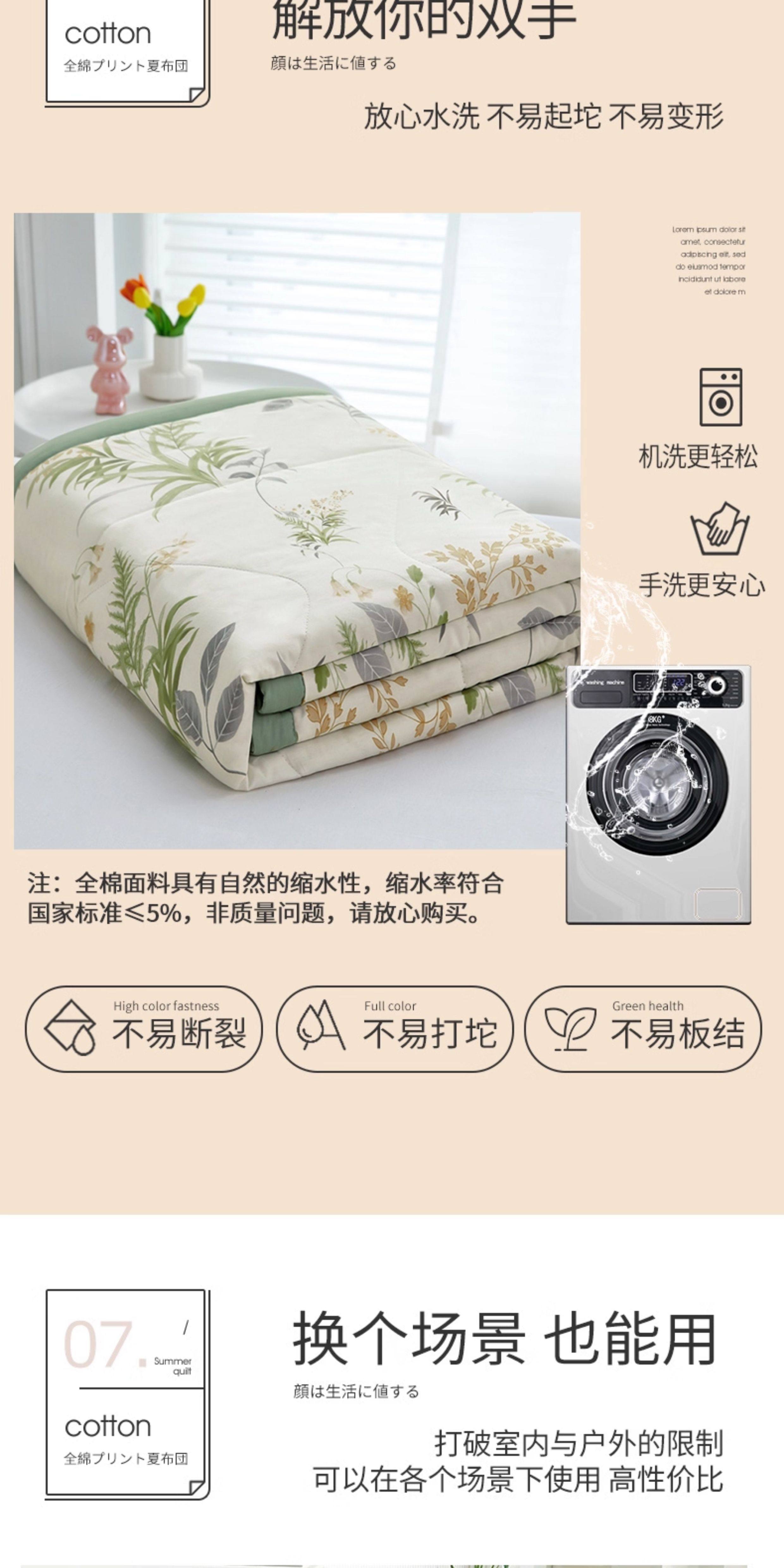 Class a All-Cotton Summer Quilt, Air-Conditioning Quilt, Summer Cooling Quilt, 100% Double-Sided Pure Cotton Thin Quilt, Single-Person Summer Quilt Core, Cotton Quilt