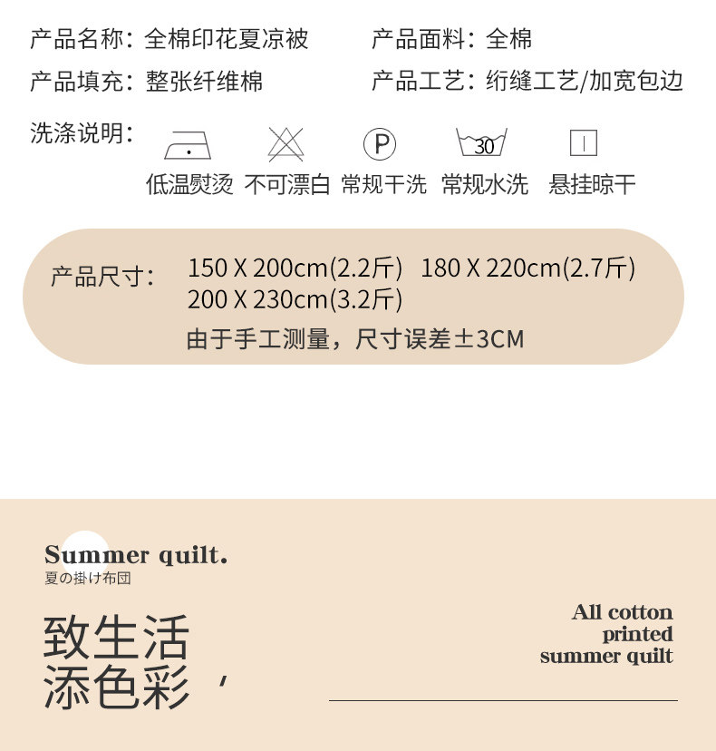 | Size | Single Summer Quilt 100X150Cm,Single Summer Quilt 150X200Cm,Single Summer Quilt 180X220Cm,Single Summer Quilt 200X230Cm |