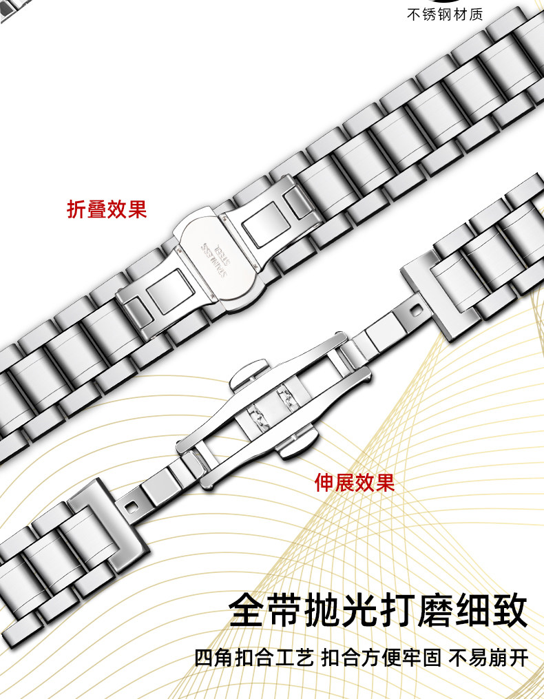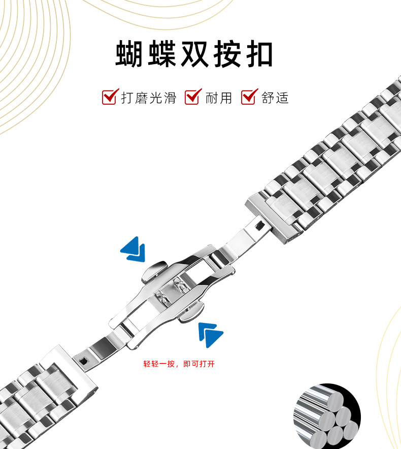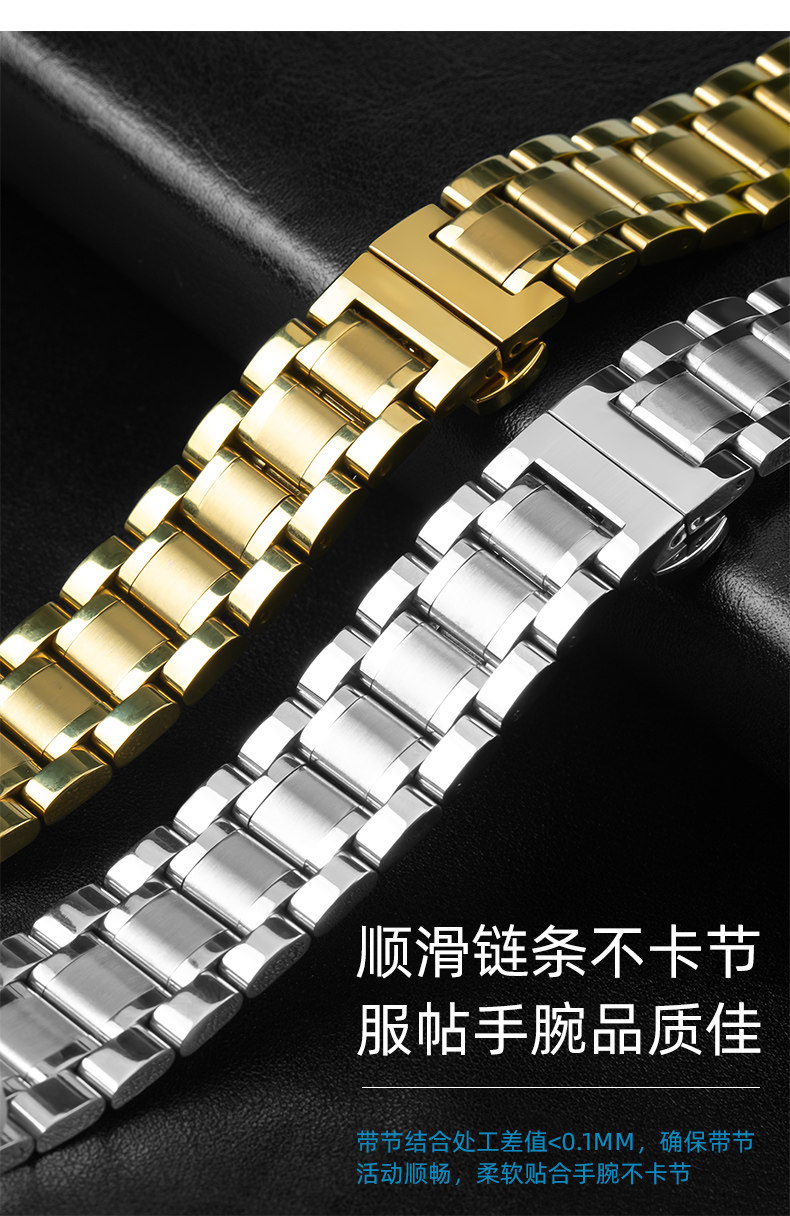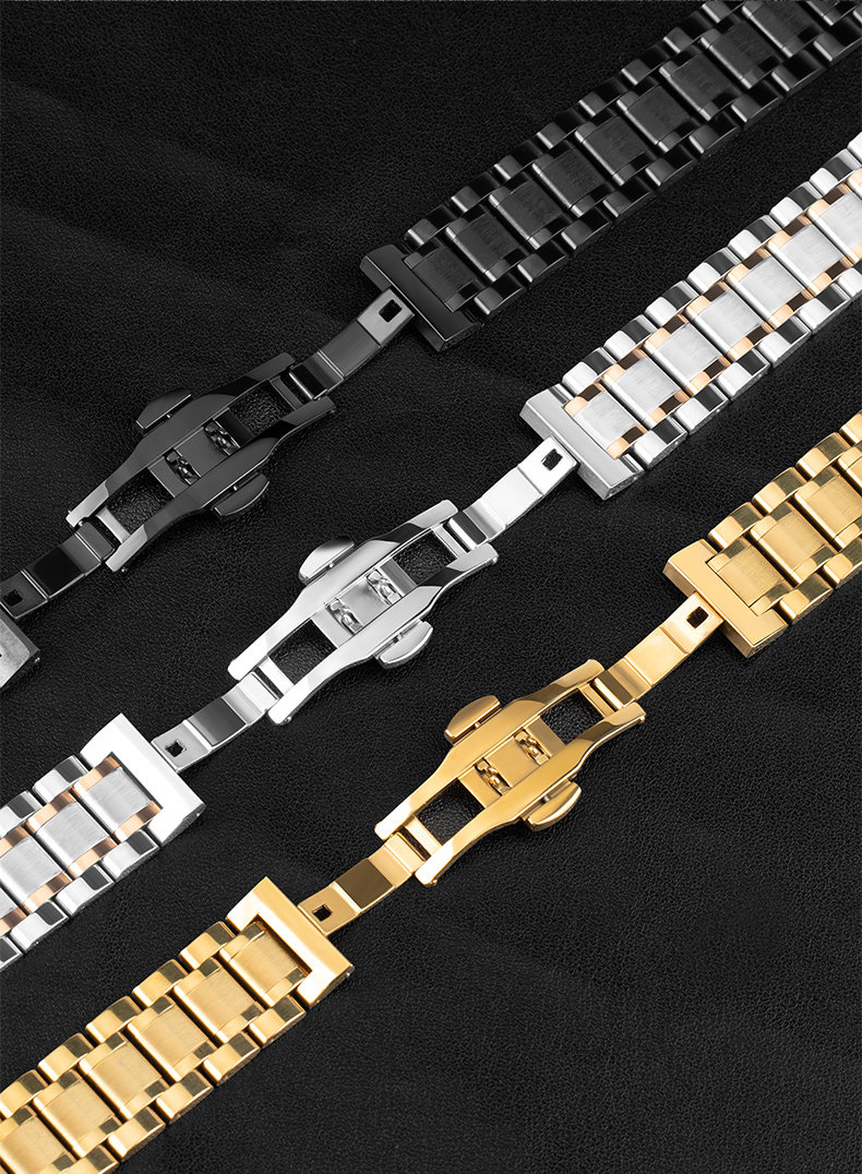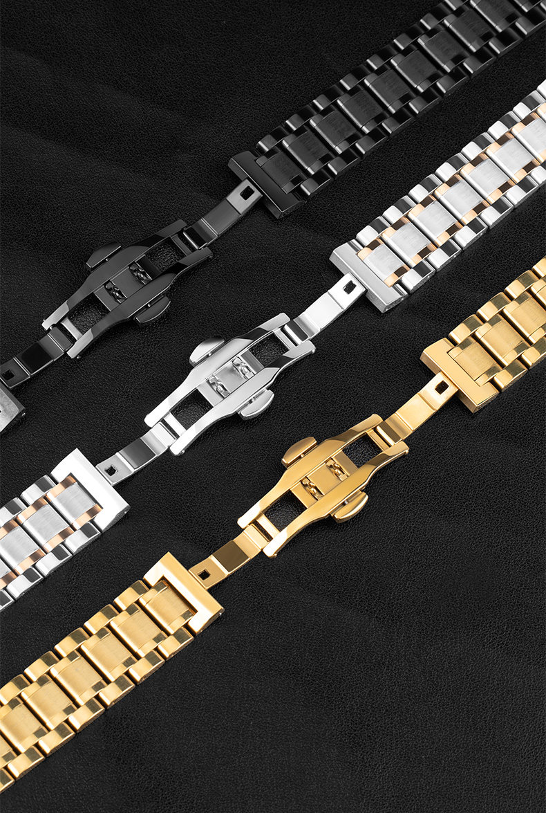 Suitable for Longines Watch Straps, Steel Strap, Original Model L2 Master Military Flag L4 Jialan Magnificent Men's and Women's Watch Strap with Butterfly Clasp