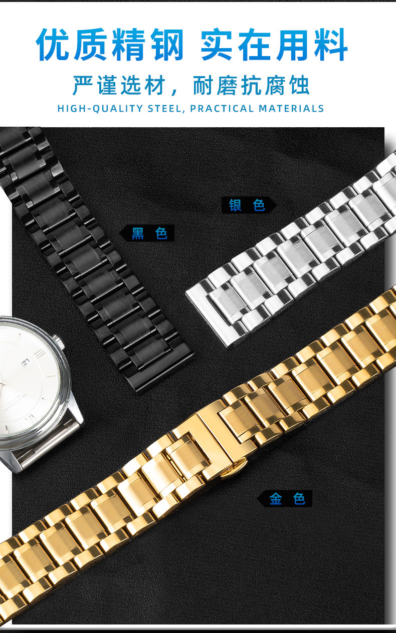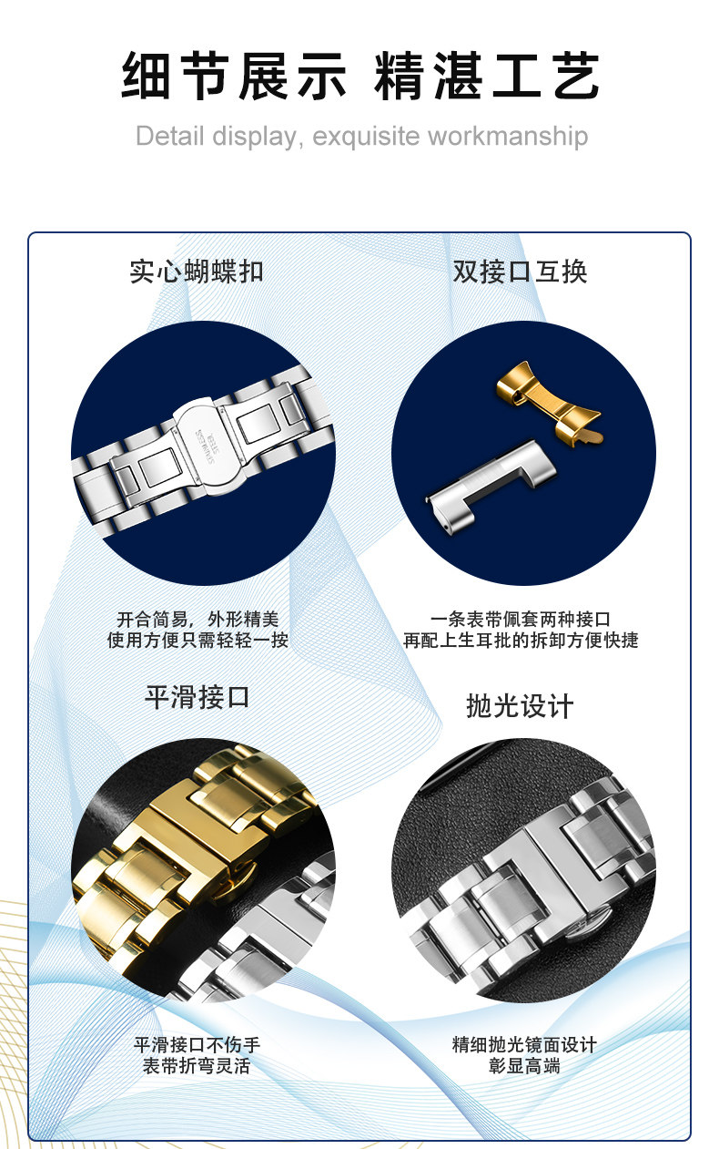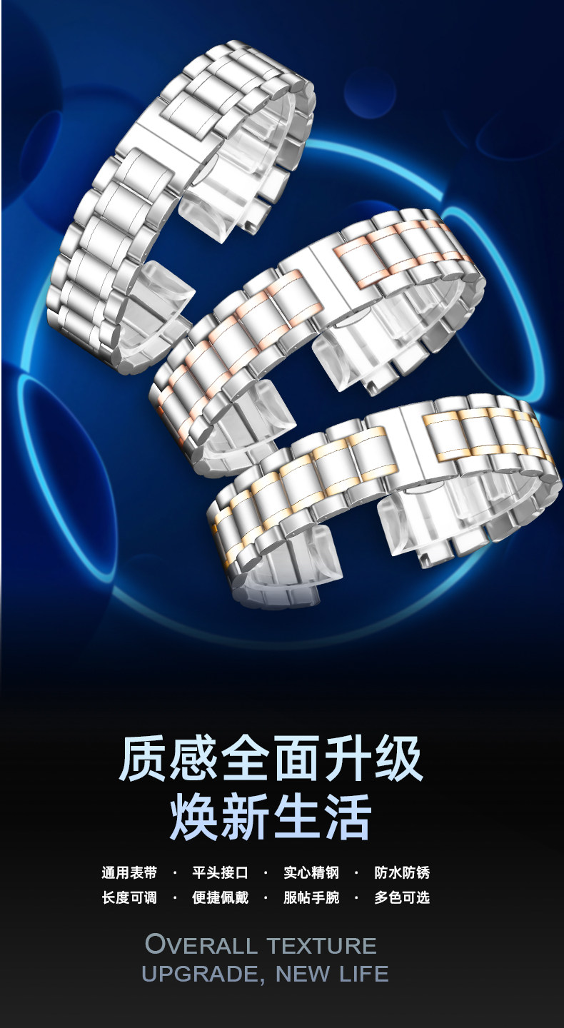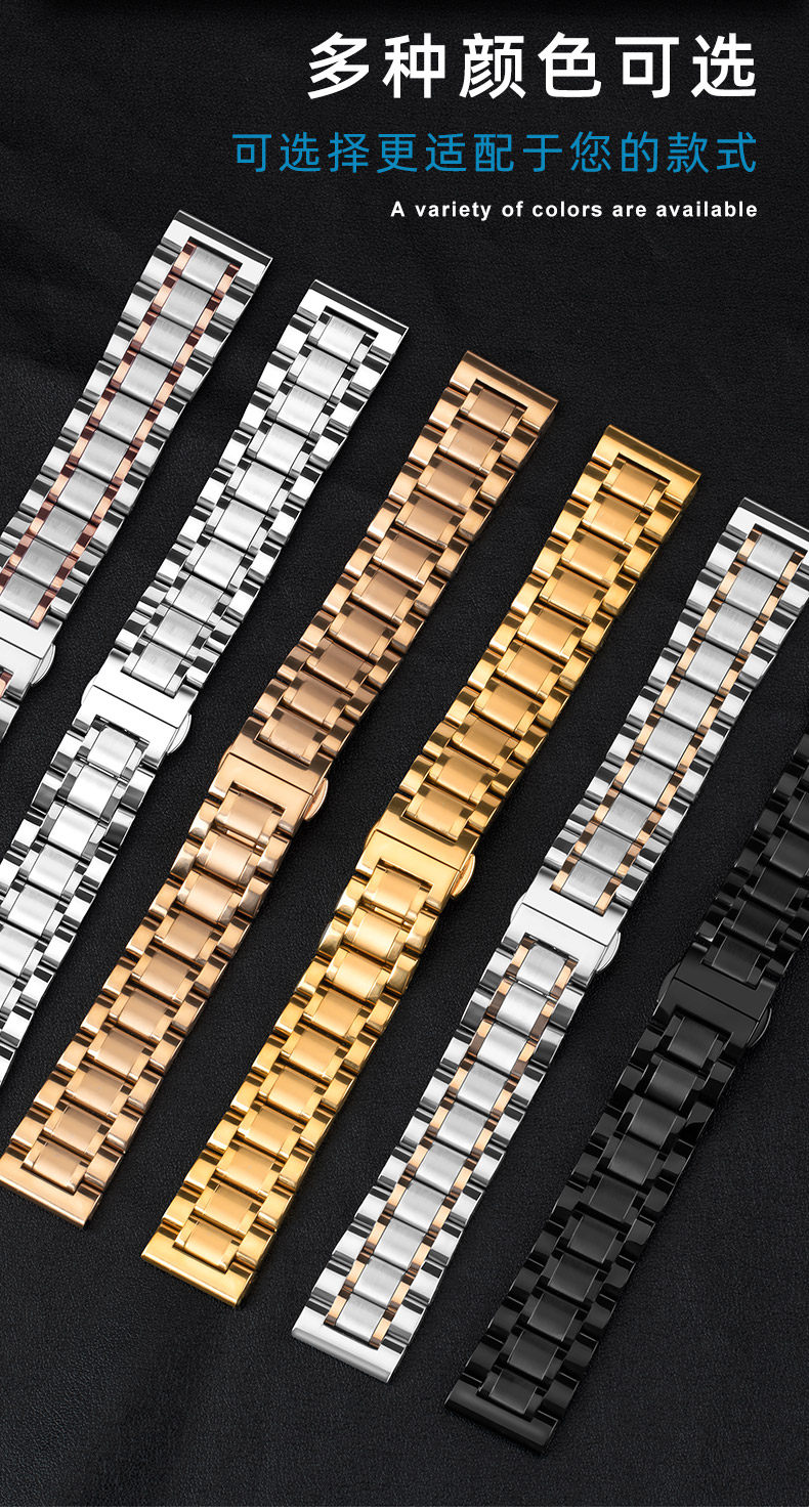 Suitable for Longines Watch Straps, Steel Strap, Original Model L2 Master Military Flag L4 Jialan Magnificent Men's and Women's Watch Strap with Butterfly Clasp