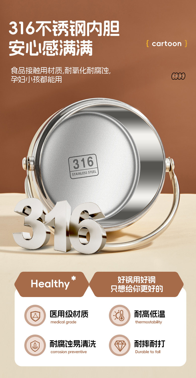 316 Stainless Steel Extra-Long Insulated Lunch Box for Office Workers in Autumn and Winter, Portable Lunch Container, 24-Hour Soup Pot, Bowl, Stew Cup