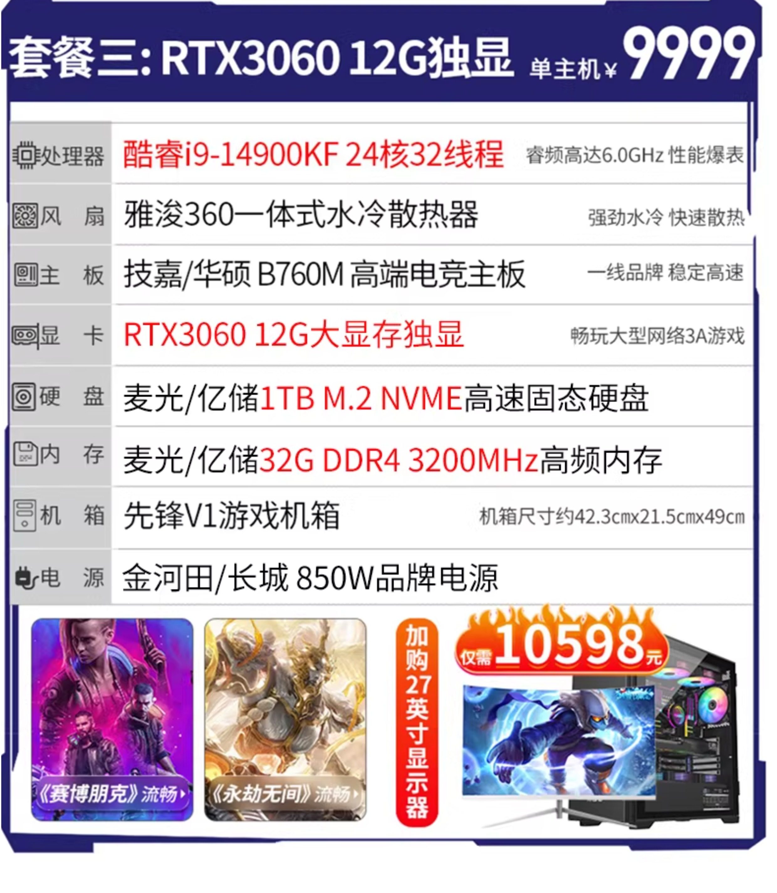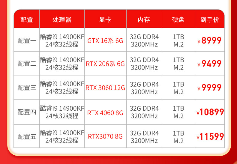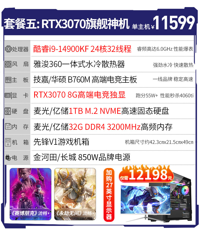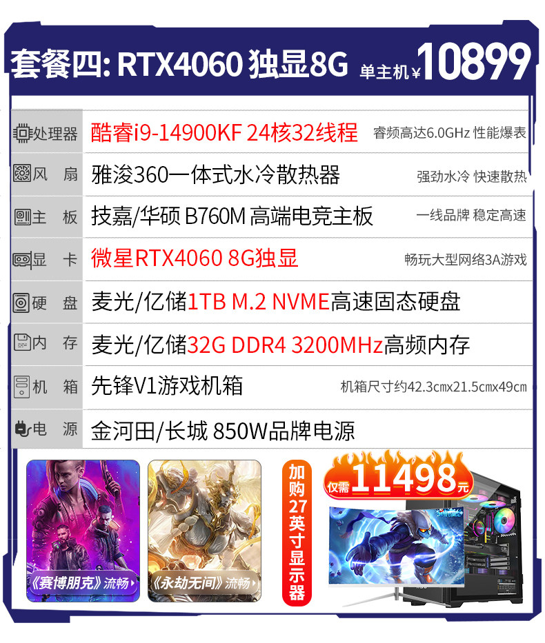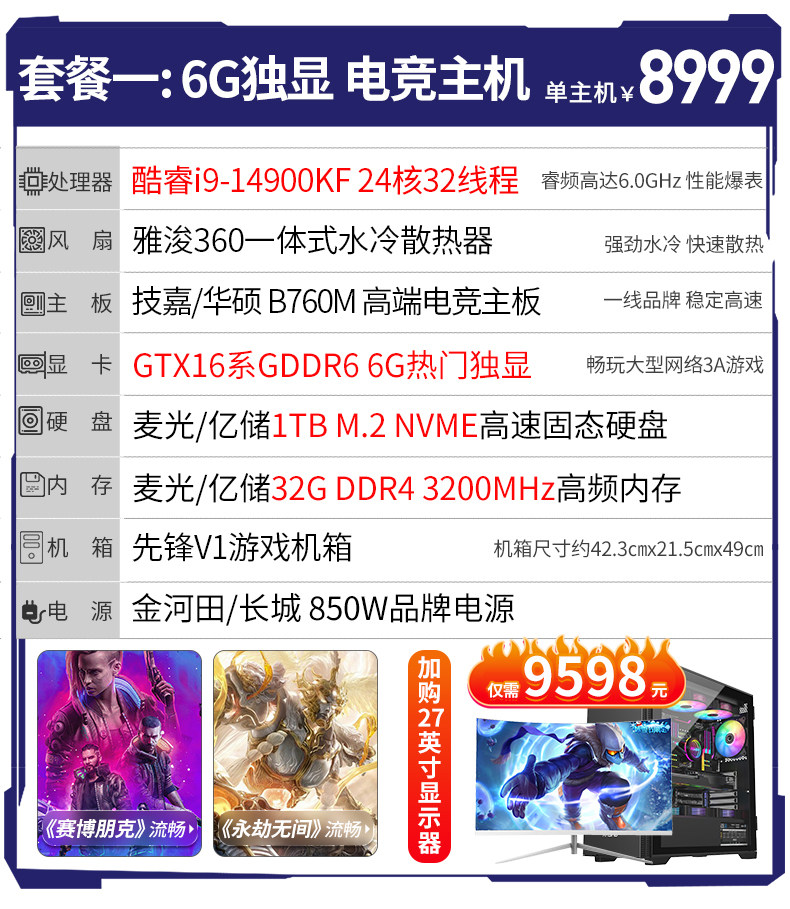 | Color Classification | Package 1I9 14900Kf/32G/1Tb,Package 2 I9 14900Kf/32G/1Tb,Package Three I9 14900Kf/Rtx3060 12G/32G/1Tb,Package Four I9 14900Kf/Rtx4060 8G/32G/1Tb,Package Five I9 14900Kf/Rtx3070 8G/32G/1Tb,Package 1 14Th Generation I9/32G+1Tb+ 27inch Monitor,Package 2 14Th Generation I9/32G+1Tb+ 27inch Monitor,Package Three 14Th Generation I9/Rtx3060+ 27inch Monitors,Package 4 14Th Generation I9/Rtx4060+ 27inch Monitors,Package 5 14Th Generation I9/Rtx3070+ 27inch Monitor |