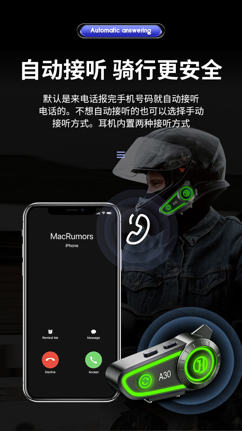 Hengjiang-A30 Motorcycle Helmet Bluetooth Headset for Delivery Riders, Full Helmet, Half Helmet, Waterproof, Long Battery Life, Mesh Intercom