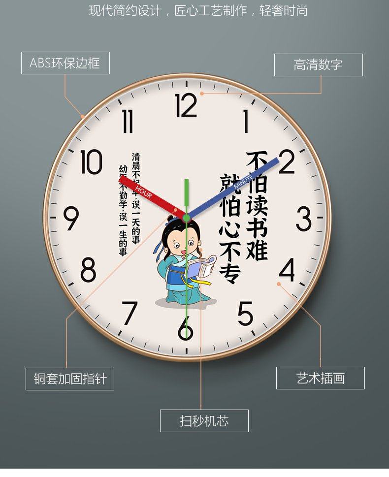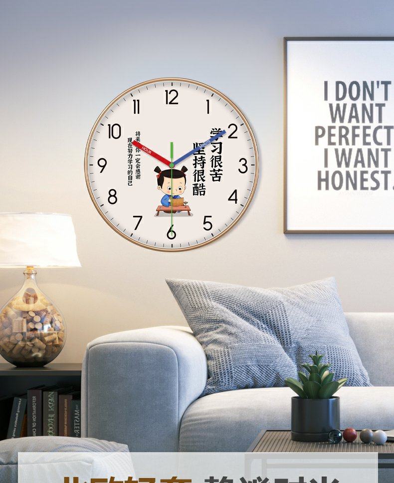 Classroom Junior High School Cartoon Learning Wall Clock Student Creative Clock Living Room Children's Room Clock Inspirational Fashion Wall Clock