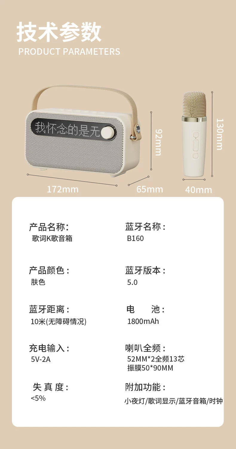 | Color Classification | [Classic Packaging]Single Microphone Model-Bluetooth Speaker+Microphone*1+Classic Color Box,[Classic Packaging]Dual Microphone Model-Bluetooth Speaker+Microphone*2+Classic Color Box,[Exquisite Packaging]Single Microphone Model-Bluetooth Speaker+Microphone*1+Exquisite Packaging+Gift Bag,[Exquisite Packaging]Dual Microphone Model-Bluetooth Speaker+Microphone*2+Exquisite Packaging+Gift Bag,⭐Recommend⭐Limited Time Discount Price[Ai Voice Song Request]Dual Microphone Model-Bluetooth Speaker+Microphone*2+Exquisite Packaging+Gift Bag,[Ai Voice Song Request]Single Microphone Model-Bluetooth Speaker+Microphone*1+Exquisite Packaging+Gift Bag,[Explanation]Recommended Popular Dual-Mic Model,Party and Sing Karaoke for More Joy |