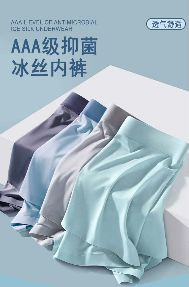Ice Silk Men's Seamless Boxer Briefs, Thin Shorts, Underwear for Teenagers, 2026 New Summer Style