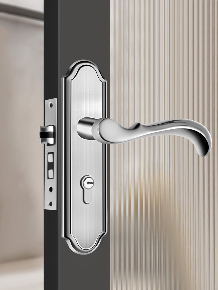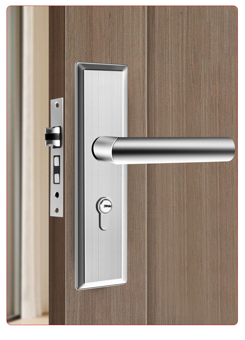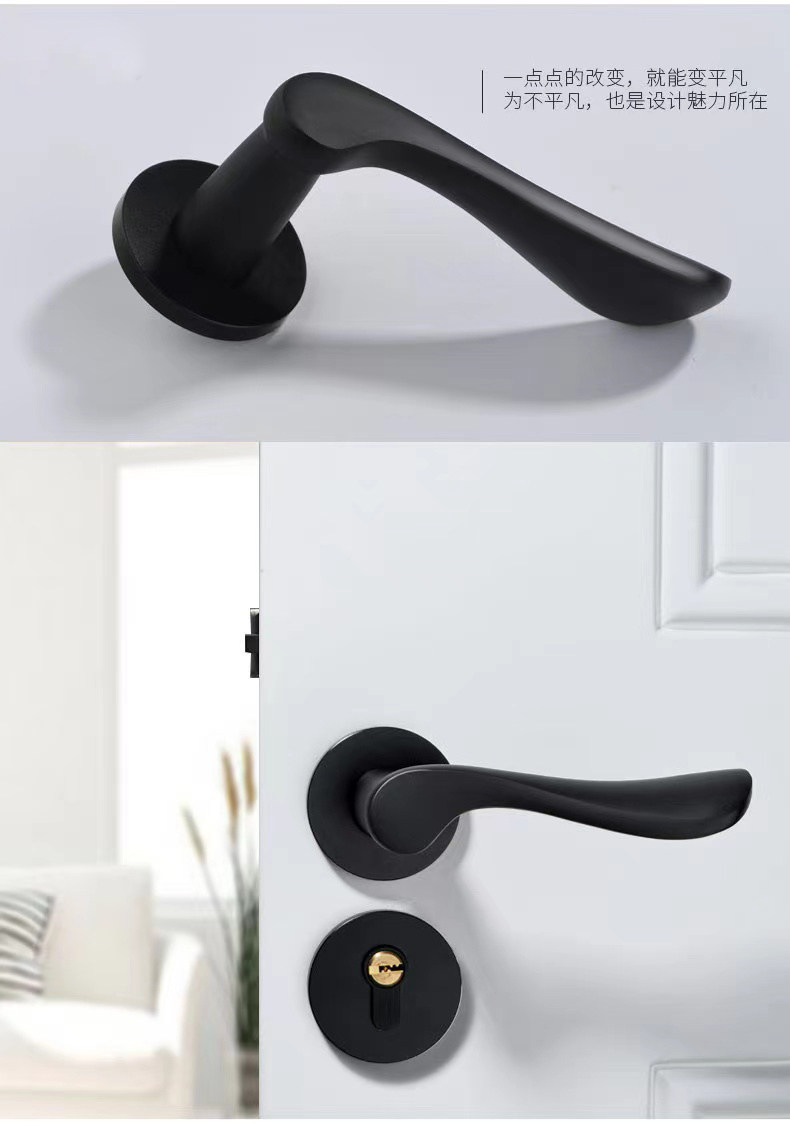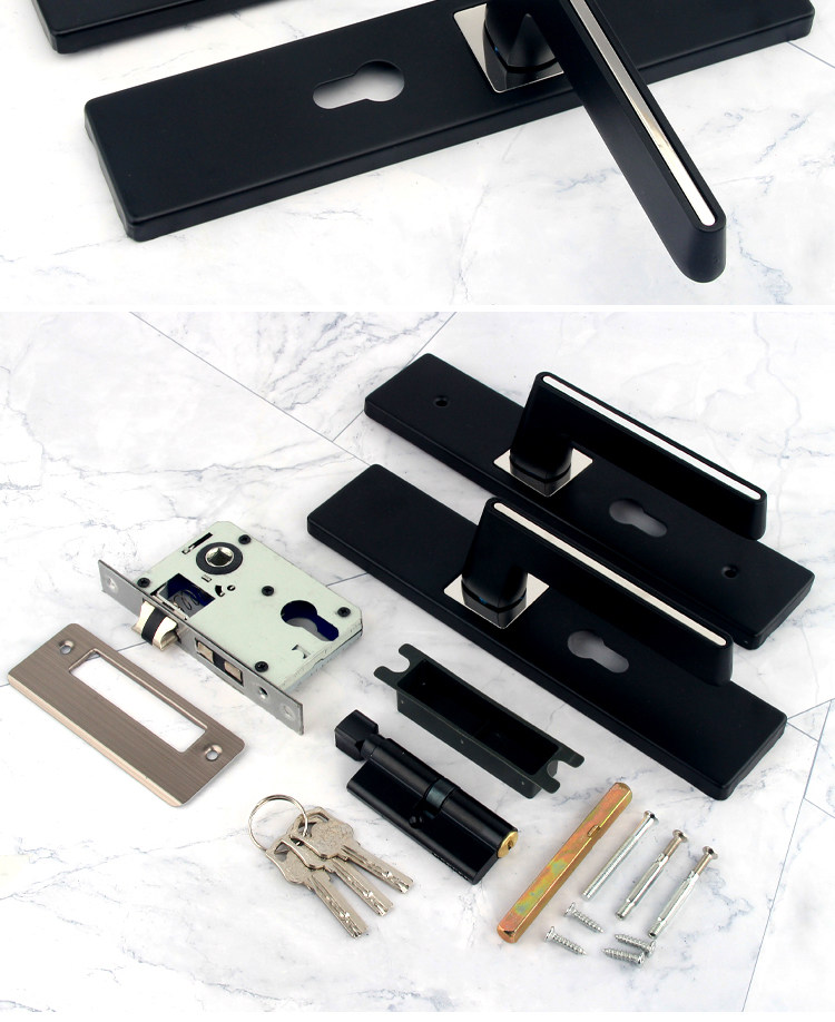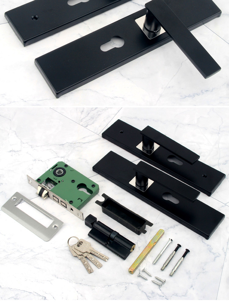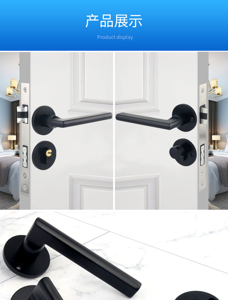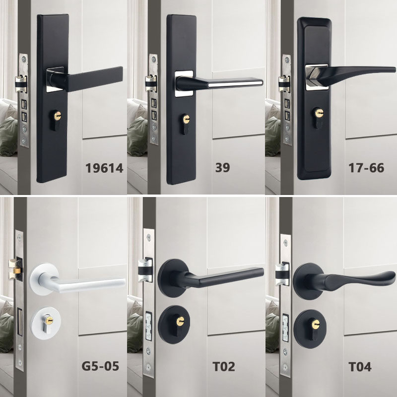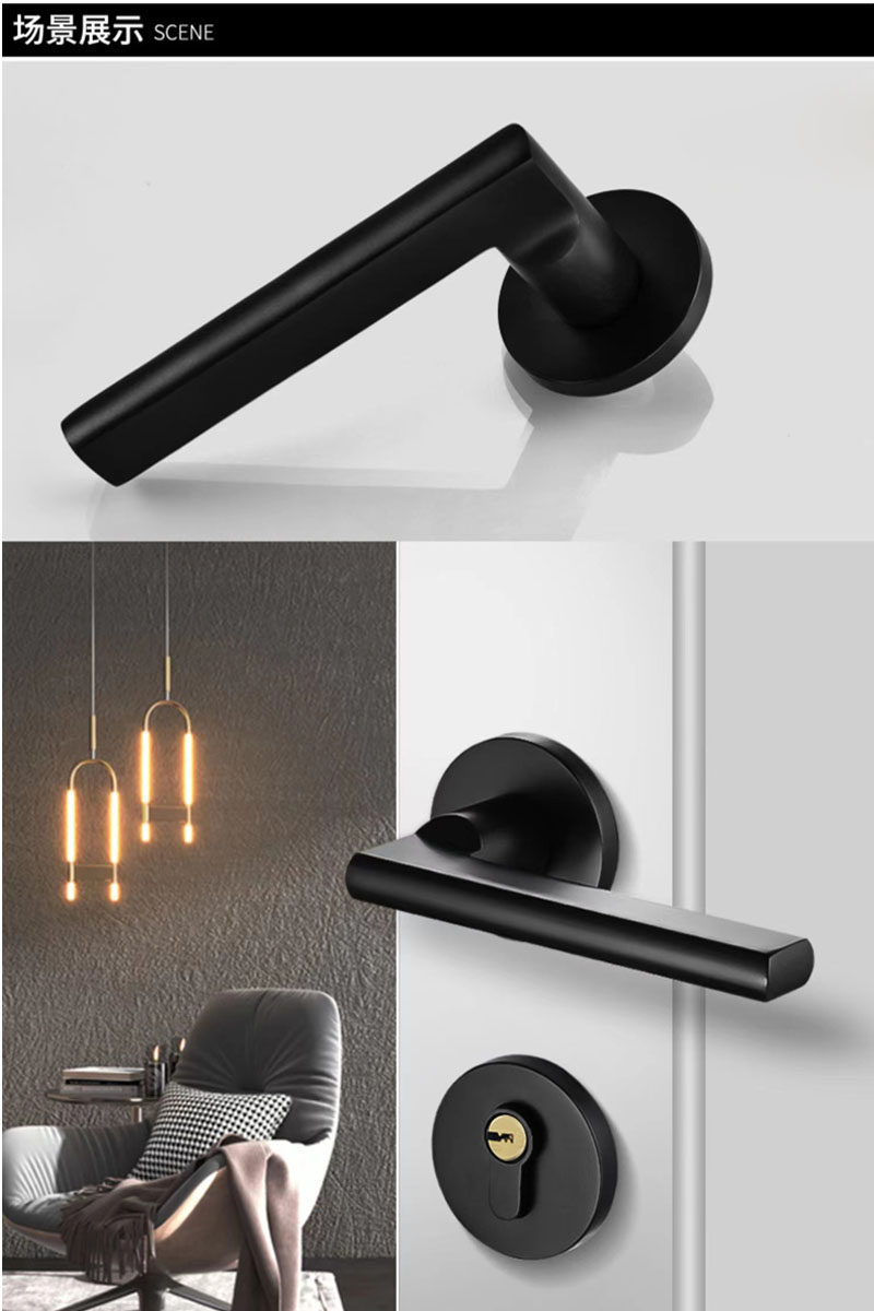 Indoor Stainless Steel Door Lock, Bedroom Lock, Black Silent Lock, Universal Room Wooden Door Lock, Household Lock, Handle Lock