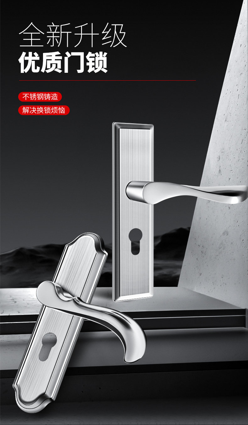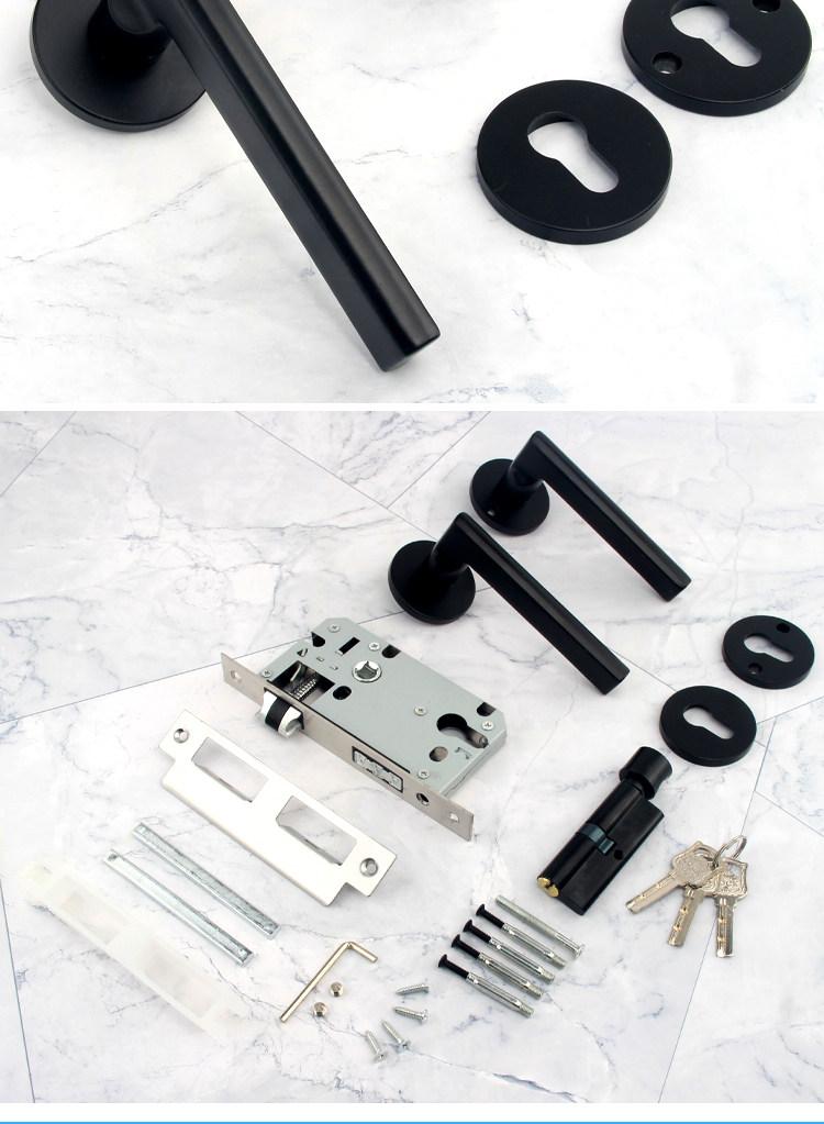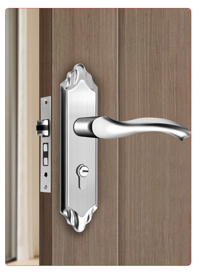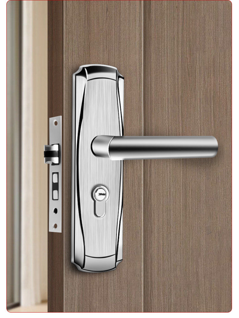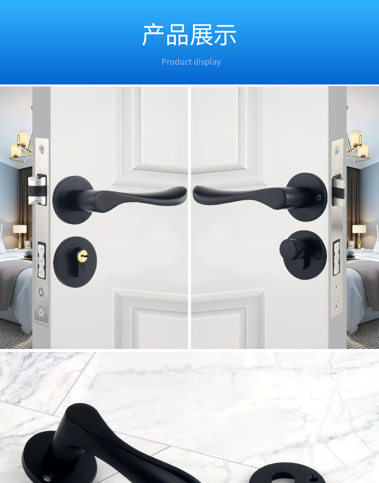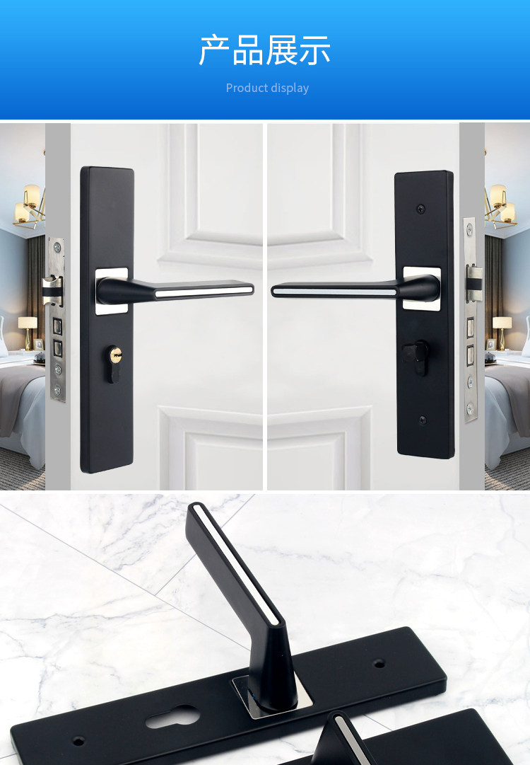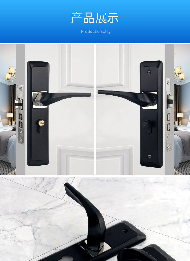 Indoor Stainless Steel Door Lock, Bedroom Lock, Black Silent Lock, Universal Room Wooden Door Lock, Household Lock, Handle Lock