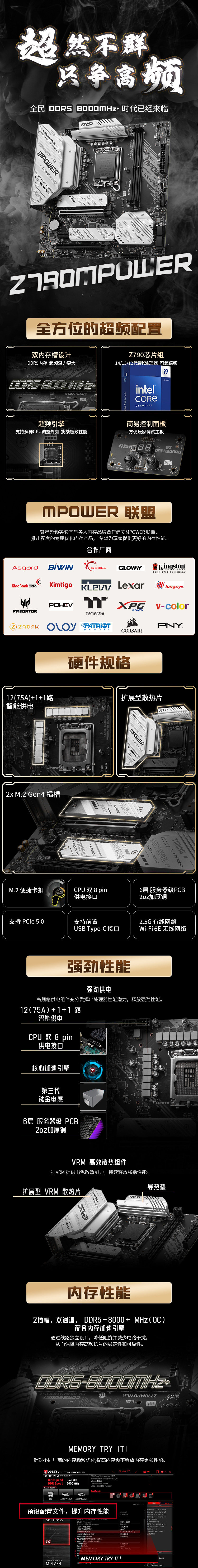 Msi/Msi Official Z790Mpower Desktop Computer E-Sports Gaming Overclocking Motherboard Ddr5 Memory Flagship