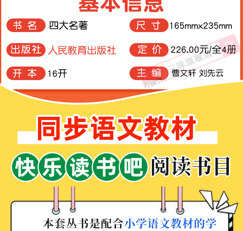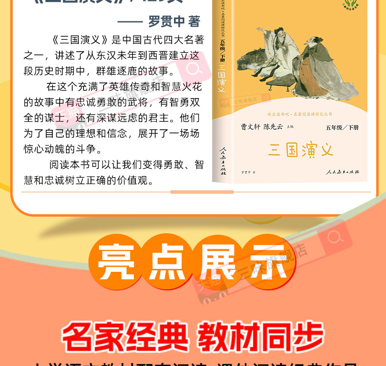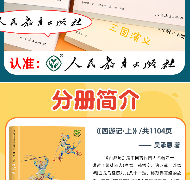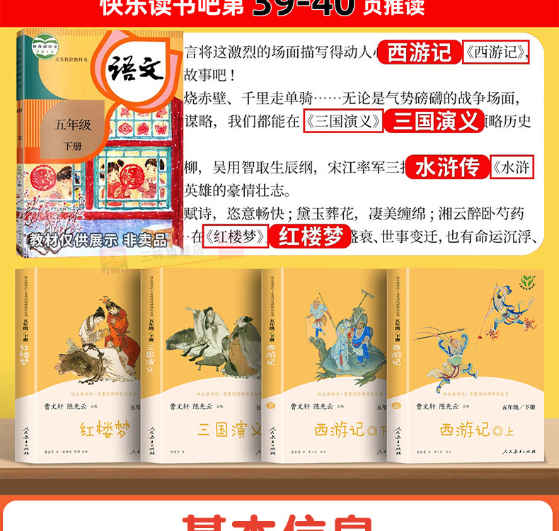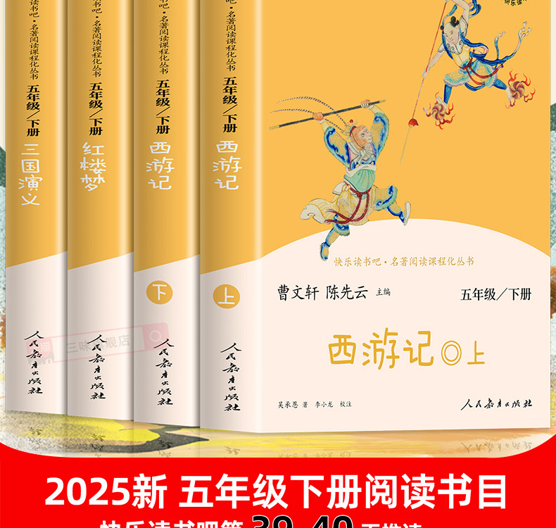 People's Education Press Original Edition of the Four Major Classics, Authentic Primary School Edition, Happy Reading, Fifth Grade Second Semester Must-Read Extracurricular Books, Journey to the West, Dream of Red Mansions, Romance of the Three Kingdoms, People's Education Press, Water Margin, Youth Edition, Complete Set