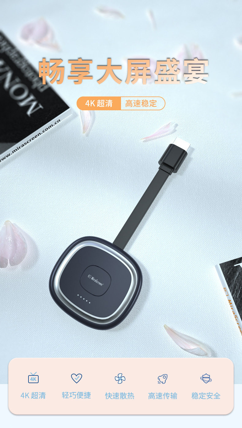 Baitu Screen Projector Connects Mobile Phone to Tv Wirelessly, Same-Screen HDMI Connection, Adapter for Monitor, Computer, Projector Transmission