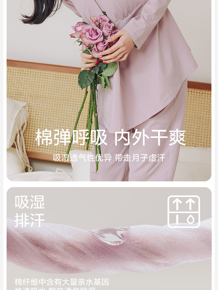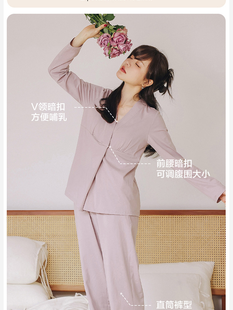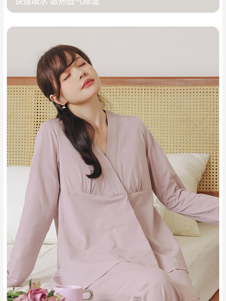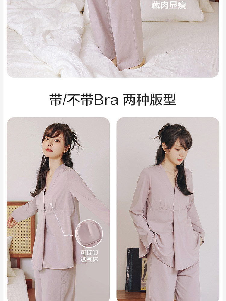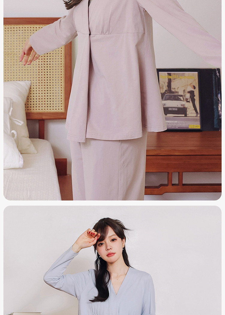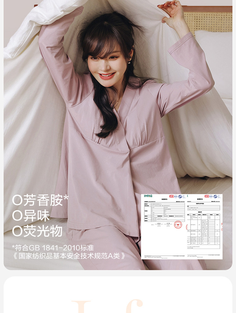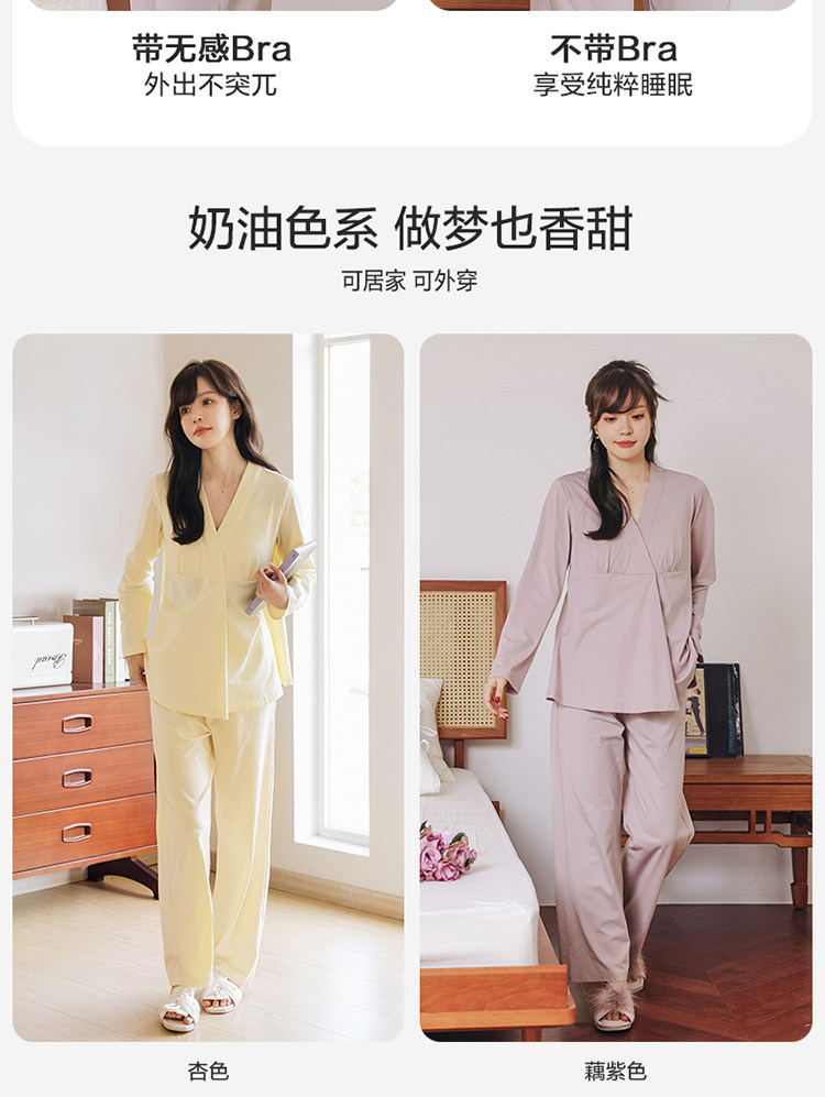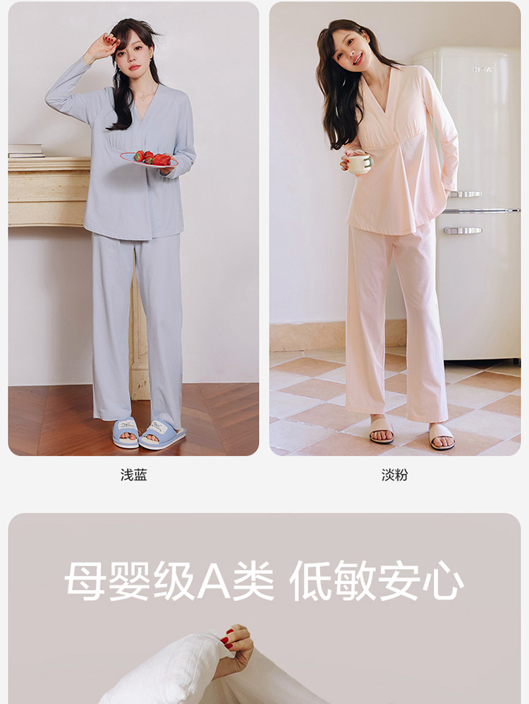 Postpartum Clothing for Women, Pure Cotton Nursing Maternity Pajamas, Pregnancy Class A, All-Cotton, Sweat-Absorbent, Winter, with Breast Pads, Maternity Loungewear