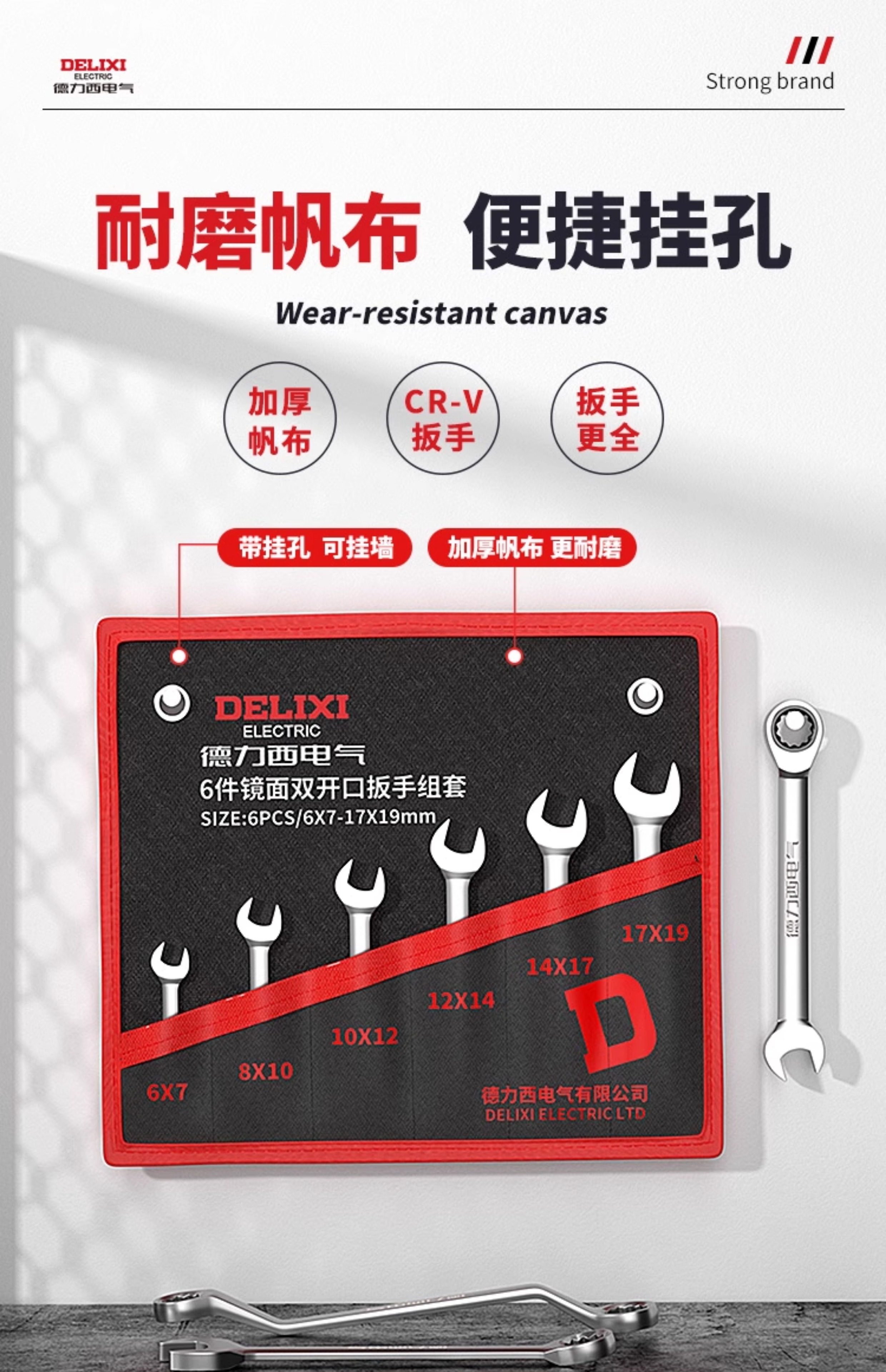 Delixi Electric Wrench Set Tool Kit, Dual-Purpose Ratchet Wrench, Double-Ended Open-End Wrench, Combination Wrench